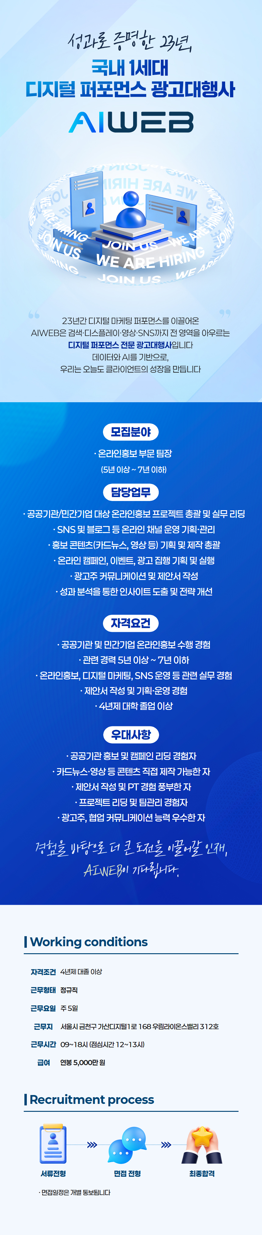 [AIWEB] ¿Â¶óÀÎÈ«º¸ °æ·ÂÁ÷¿ø ä¿ë(ÆÀÀå)