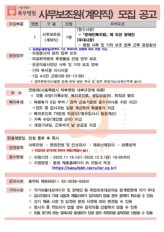 2025³â Á¦32ȸ Á÷¿ø¸ðÁý(»ç¹«º¸Á¶¿ø_Àå¾ÖÀÎä¿ë(°è¾àÁ÷)) °ø°í