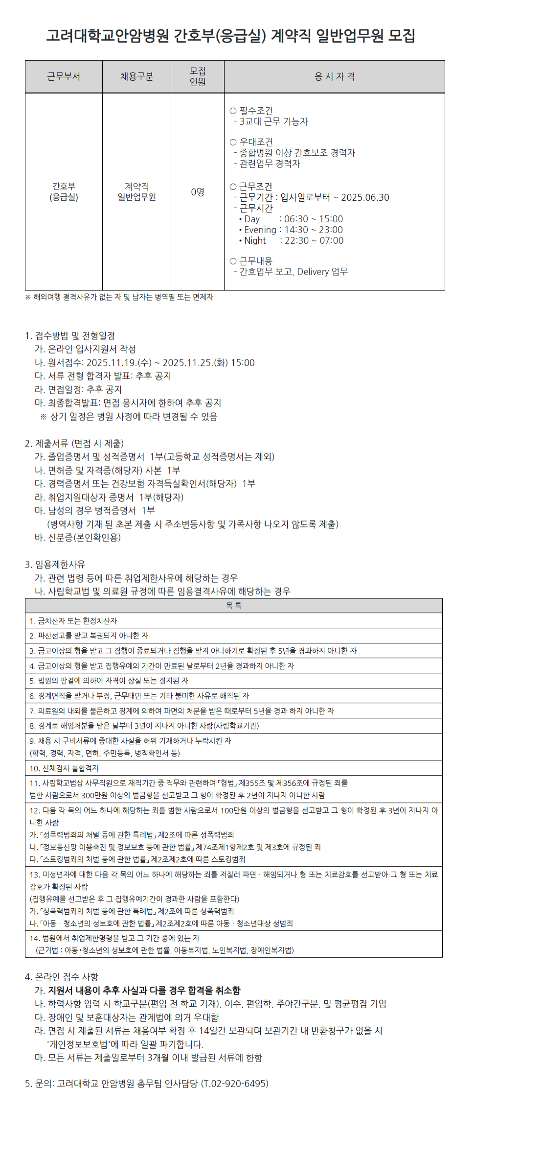 [¾È¾Ïº´¿ø 25-211]°£È£ºÎ(ÀÀ±Þ½Ç) 3±³´ë °è¾àÁ÷ ÀϹݾ÷¹«¿ø ¸ðÁý