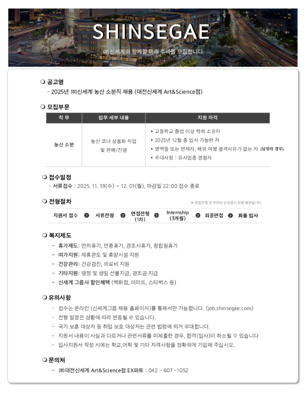 (ÁÖ)´ëÀü½Å¼¼°è ³ó»ê ¼ÒºÐ ½ÅÀÔ Ã¤¿ë (Art&ScienceÁ¡)