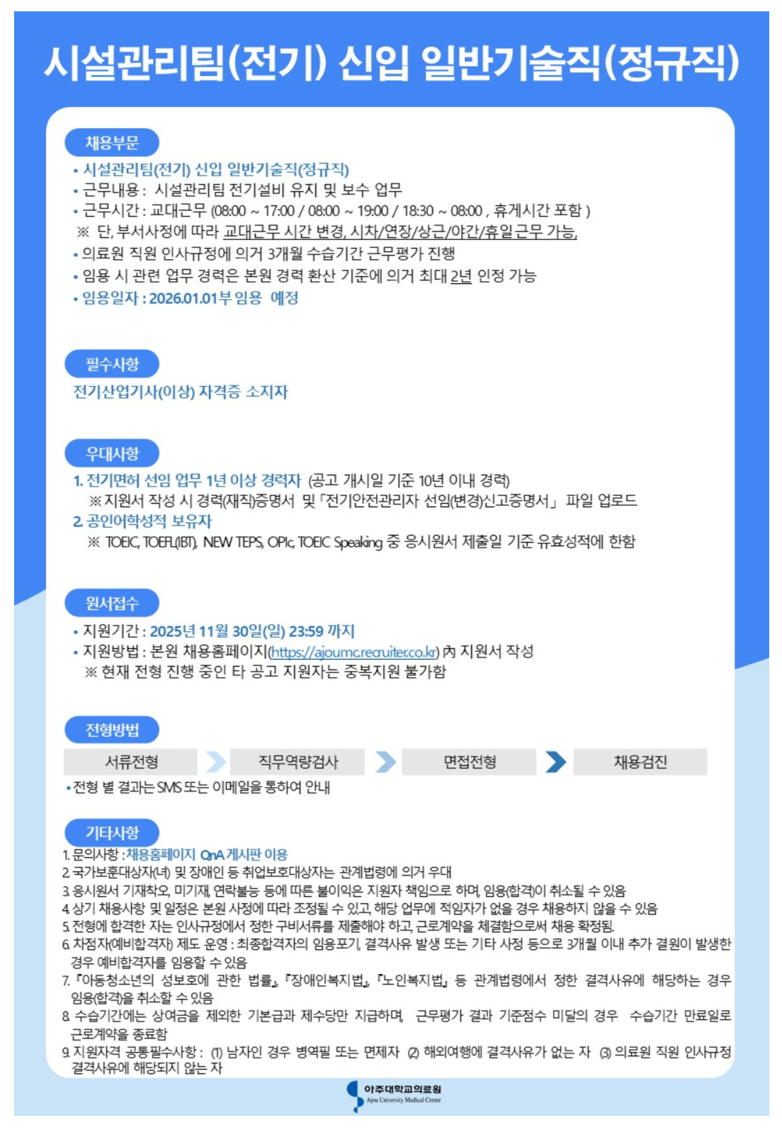 ½Ã¼³°ü¸®ÆÀ(Àü±â) ½ÅÀÔ ÀϹݱâ¼úÁ÷(Á¤±ÔÁ÷)