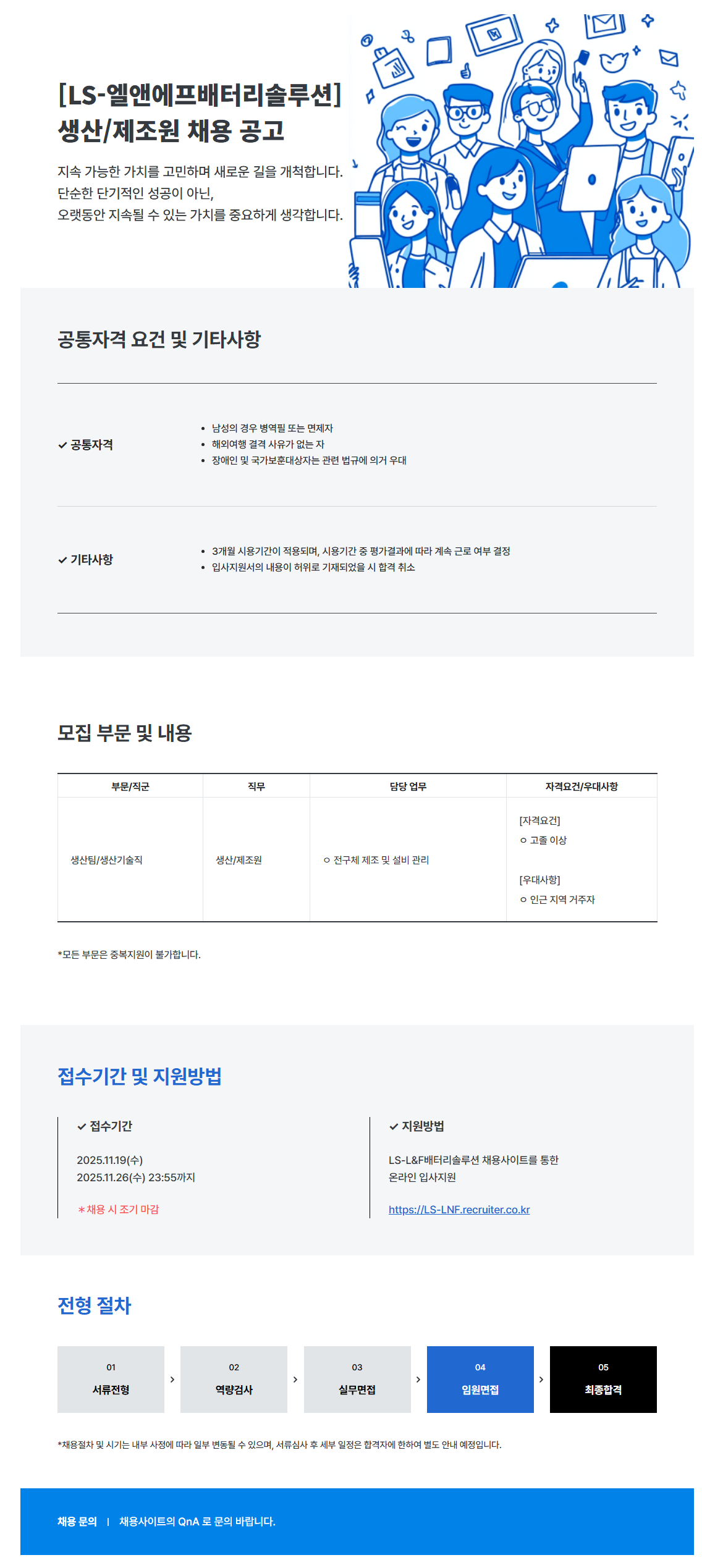 ¸ðÁý ºÎ¹® ¹× ³»¿ë ºÎ¹®/Á÷±º Á÷¹« ´ã´ç ¾÷¹« ÀÚ°Ý¿ä°Ç/¿ì´ë»çÇ× »ý»êÆÀ/»ý»ê±â¼úÁ÷ »ý»ê/Á¦Á¶¿ø ¤· Àü±¸Ã¼ Á¦Á¶ ¹× ¼³ºñ °ü¸® [ÀÚ°Ý¿ä°Ç] ¤· °íÁ¹ ÀÌ»ó [¿ì´ë»çÇ×] ¤· Àα٠Áö¿ª °ÅÁÖÀÚ *¸ðµç ºÎ¹®Àº Áߺ¹Áö¿øÀÌ ºÒ°¡ÇÕ´Ï´Ù.