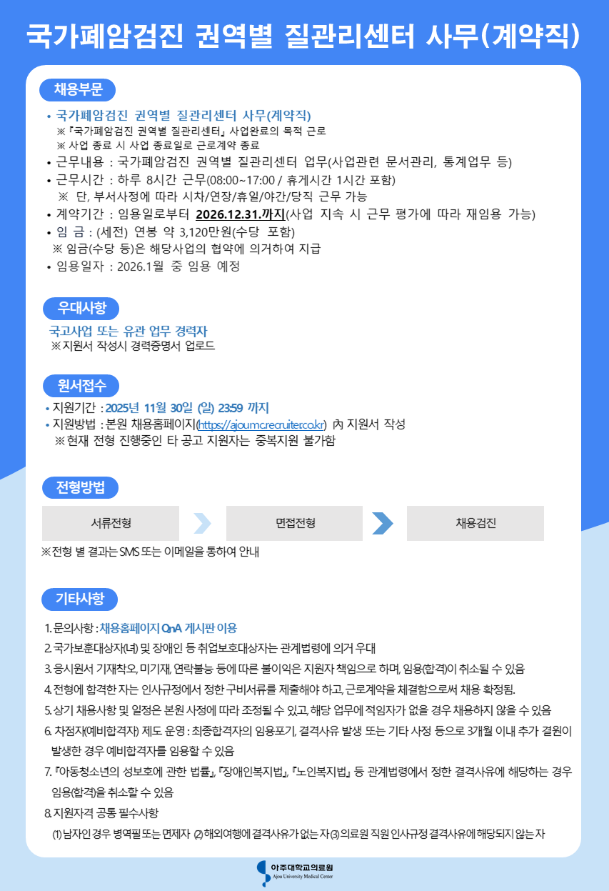 ±¹°¡Æó¾Ï°ËÁø ±Ç¿ªº° Áú°ü¸®¼¾ÅÍ »ç¹«(°è¾àÁ÷)