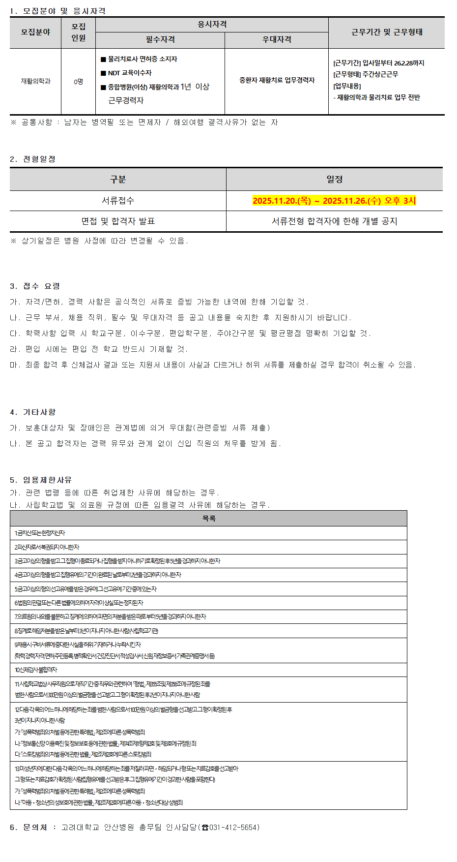 6. ¹®ÀÇó : °í·Á´ëÇб³ ¾È»êº´¿ø Ãѹ«ÆÀ Àλç´ã´ç(¢Ï***-****-****