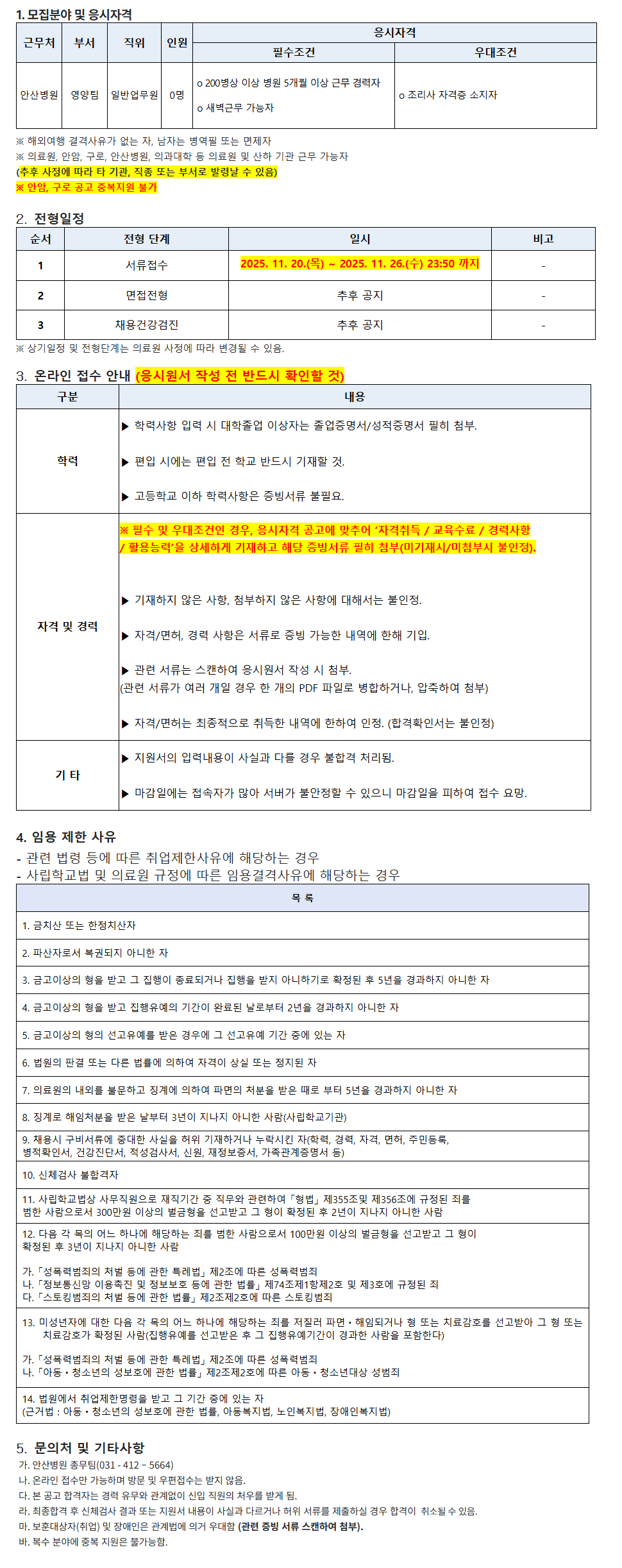 [¾È»êº´¿ø Á¤±ÔÁ÷ 25-30] ¿µ¾çÆÀ ½Å±Ô±³Á÷¿ø ¸ðÁý