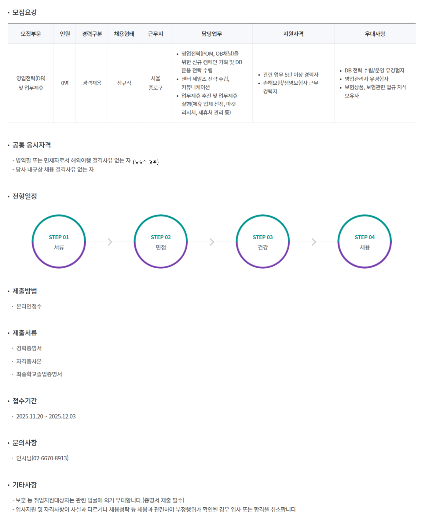 ¼ÕÇØº¸Çè/»ý¸íº¸Çè»ç ±Ù¹« °æ·ÂÀÚ DB Àü·« ¼ö¸³/¿î¿µ À¯°æÇèÀÚ