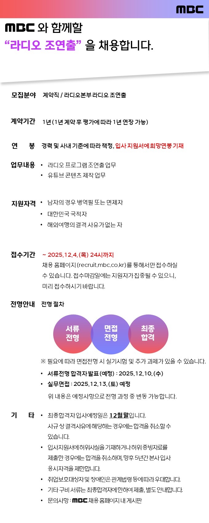 MBC ¶óµð¿À±¹ ¶óµð¿À Á¶¿¬Ãâ ´ã´ç ¸ðÁý