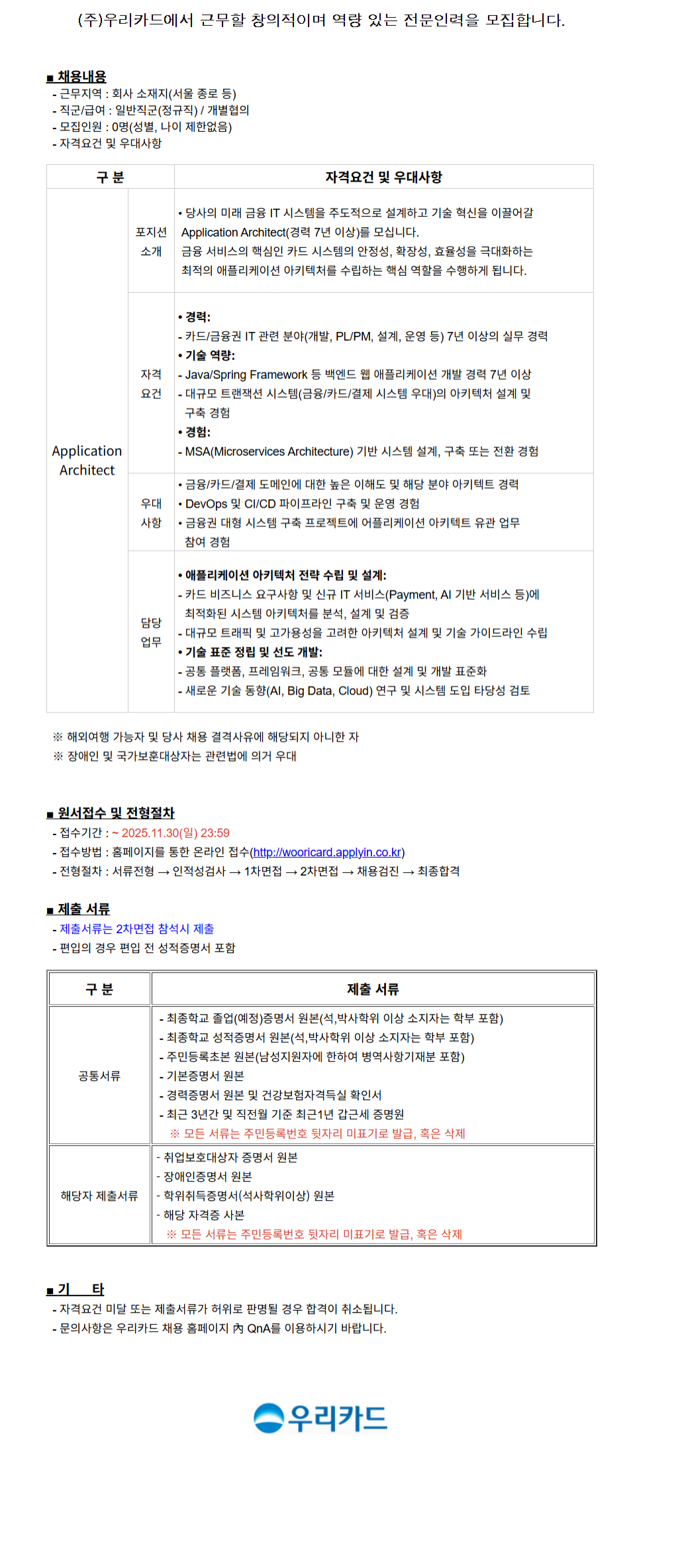 ¿ì¸®Ä«µå °æ·ÂÁ÷ ä¿ë °ø°í(Application Architect)