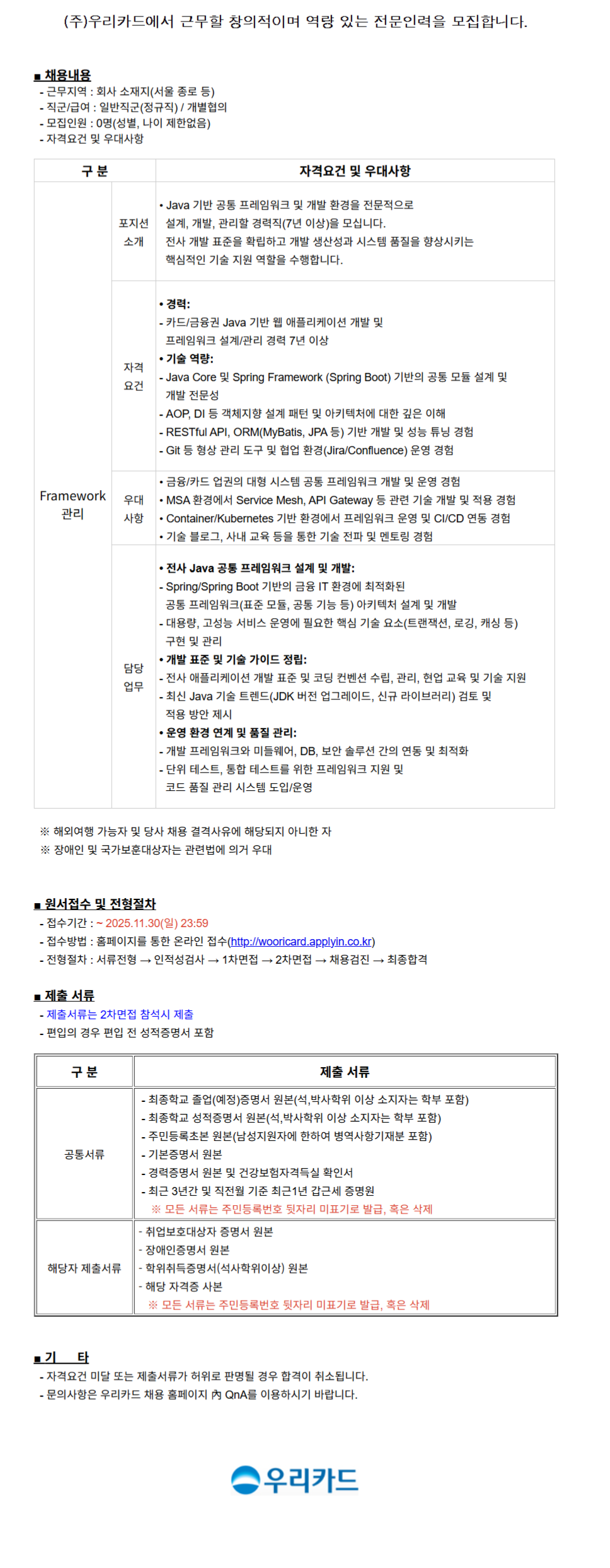 ¿ì¸®Ä«µå °æ·ÂÁ÷ ä¿ë °ø°í(Framework °ü¸®)
