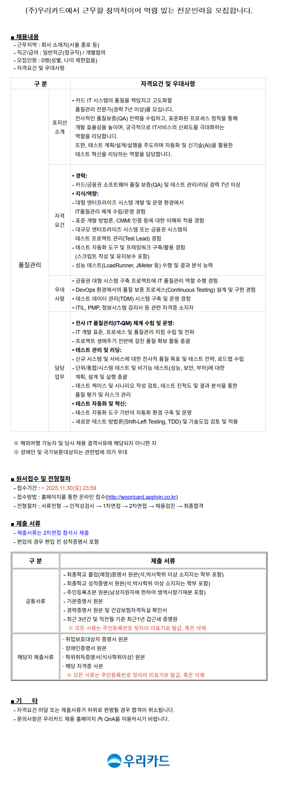 ¿ì¸®Ä«µå °æ·ÂÁ÷ ä¿ë °ø°í(ǰÁú°ü¸®)
