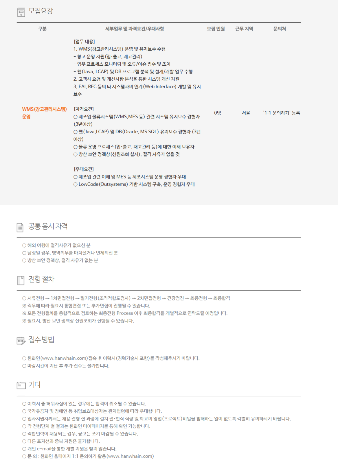 WMS(â°í°ü¸®½Ã½ºÅÛ) ¿î¿µ ´ã´çÀÚ °æ·Â»ç¿ø ä¿ë