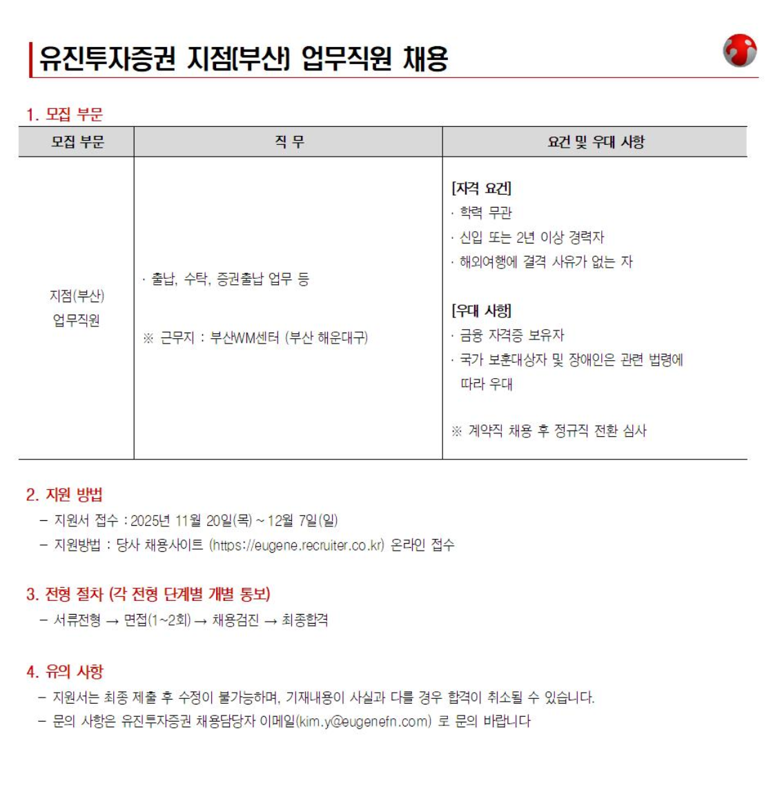 [À¯ÁøÅõÀÚÁõ±Ç] ÁöÁ¡(ºÎ»ê) ¾÷¹«Á÷¿ø ä¿ë