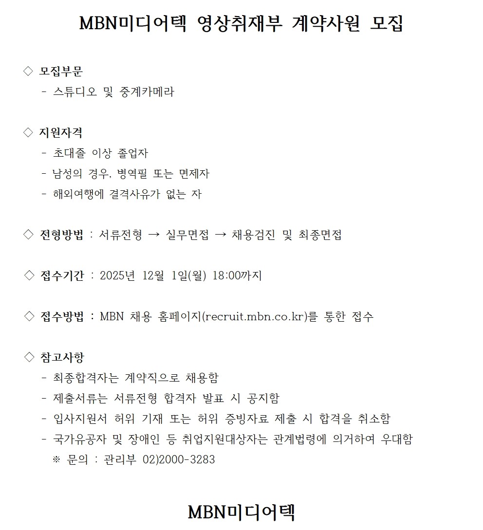 MBN¹Ìµð¾îÅØ ¿µ»óÃëÀçºÎ °è¾à»ç¿ø ¸ðÁý