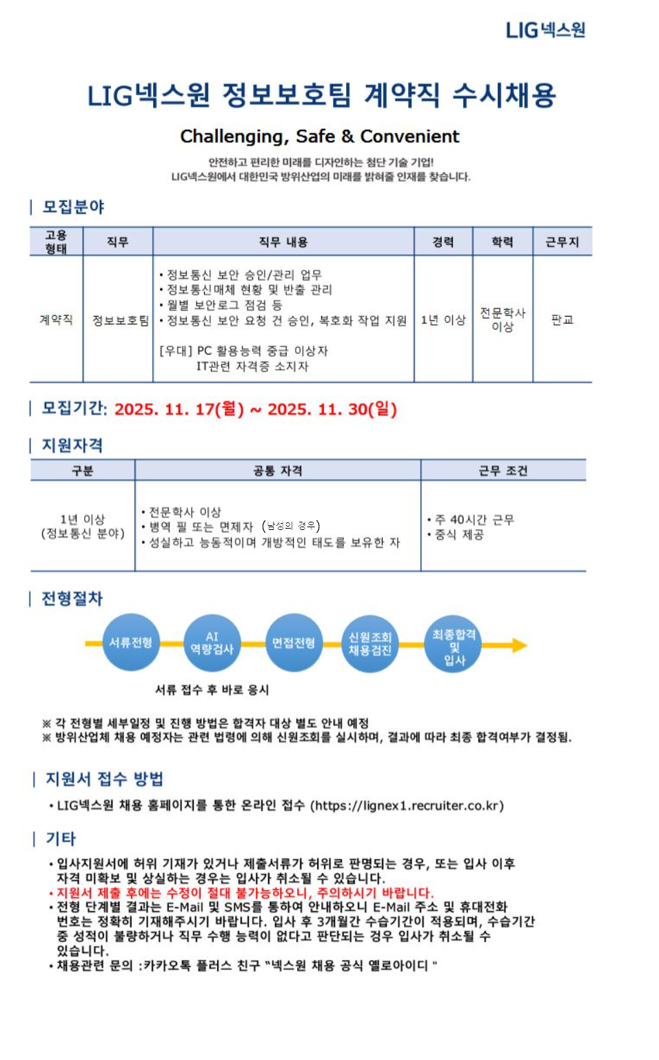 LIG³Ø½º¿ø Á¤º¸º¸È£ÆÀ °è¾àÁ÷ ¼ö½Ãä¿ë