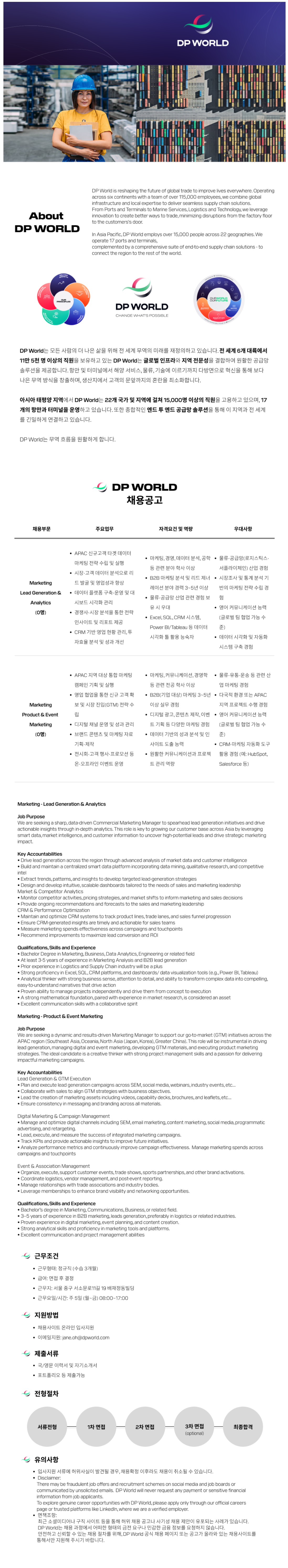 [¿Ü±¹°è ±â¾÷] DP World - Commercial Logistics ¸¶ÄÉÆÃÆÀ ä¿ë