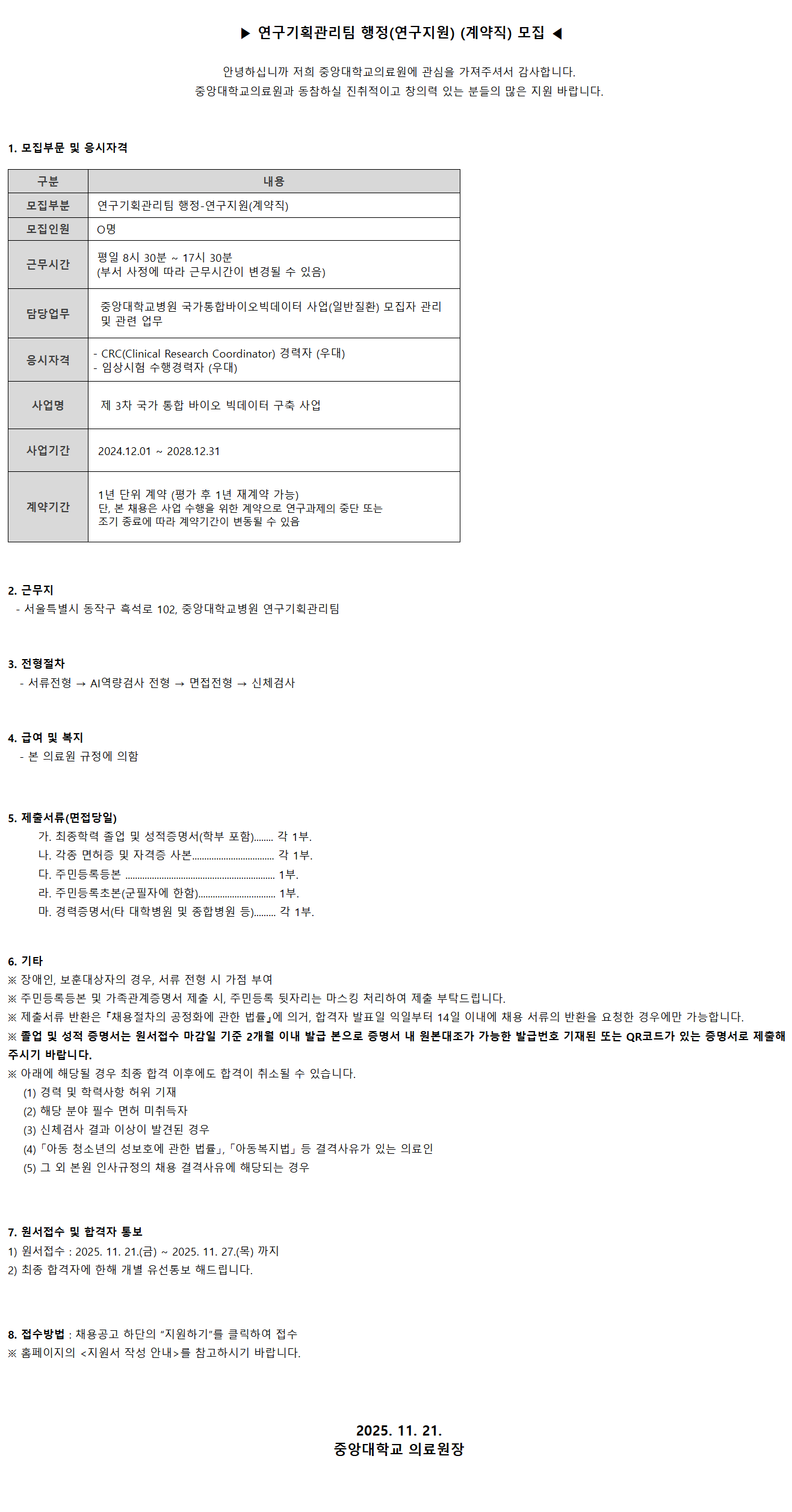 Áß¾Ó´ëÇб³º´¿ø ±¹°¡ÅëÇÕ¹ÙÀÌ¿Àºòµ¥ÀÌÅÍ »ç¾÷(ÀϹÝÁúȯ) ¸ðÁýÀÚ °ü¸®