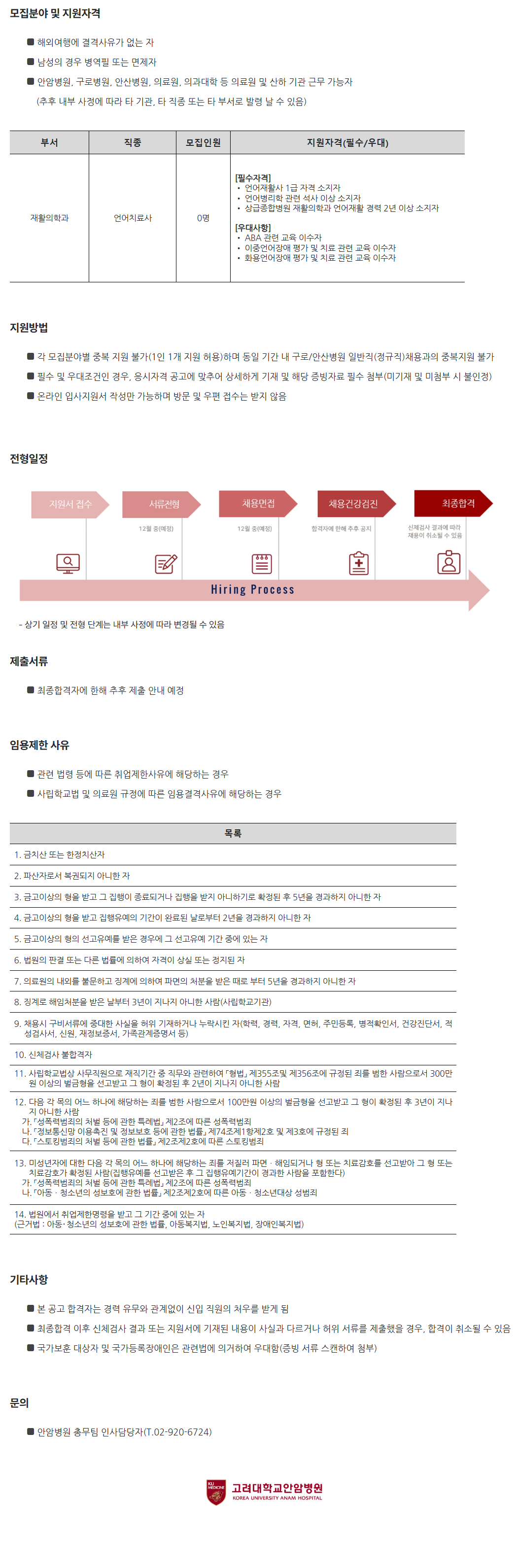 °í·Á´ëÇб³ÀÇ·á¿ø(¾È¾Ïº´¿ø) ½Å±Ô ±³Á÷¿ø(Á¤±ÔÁ÷) ¸ðÁý(ÀçȰÀÇÇаú ¾ð¾îÄ¡·á»ç)