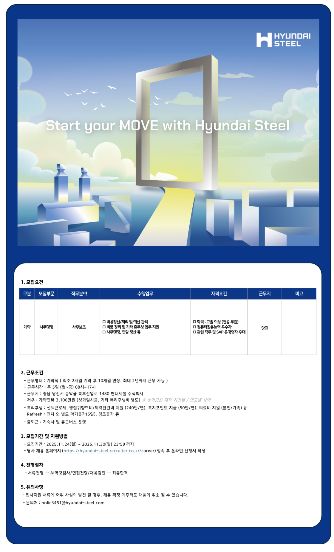 Çö´ëÁ¦Ã¶¢ß ¾÷¹«Áö¿ø »ç¹«º¸Á¶ °è¾àÁ÷ ä¿ë (´çÁø R&D)