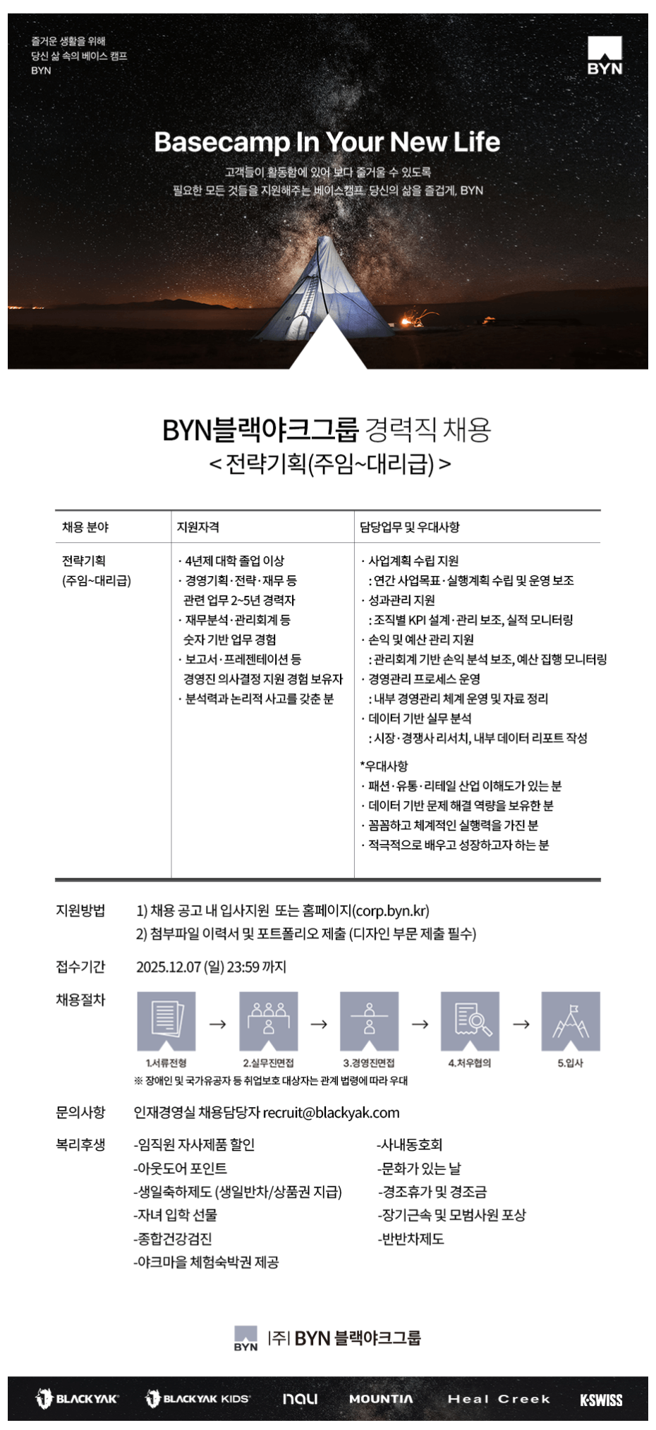 [BYNºí·¢¾ßÅ©] Àü·«±âȹ ºÎ¹® °æ·ÂÁ÷(ÁÖÀÓ~´ë¸®±Þ) ä¿ë(11/20(¸ñ)~12/7(ÀÏ))