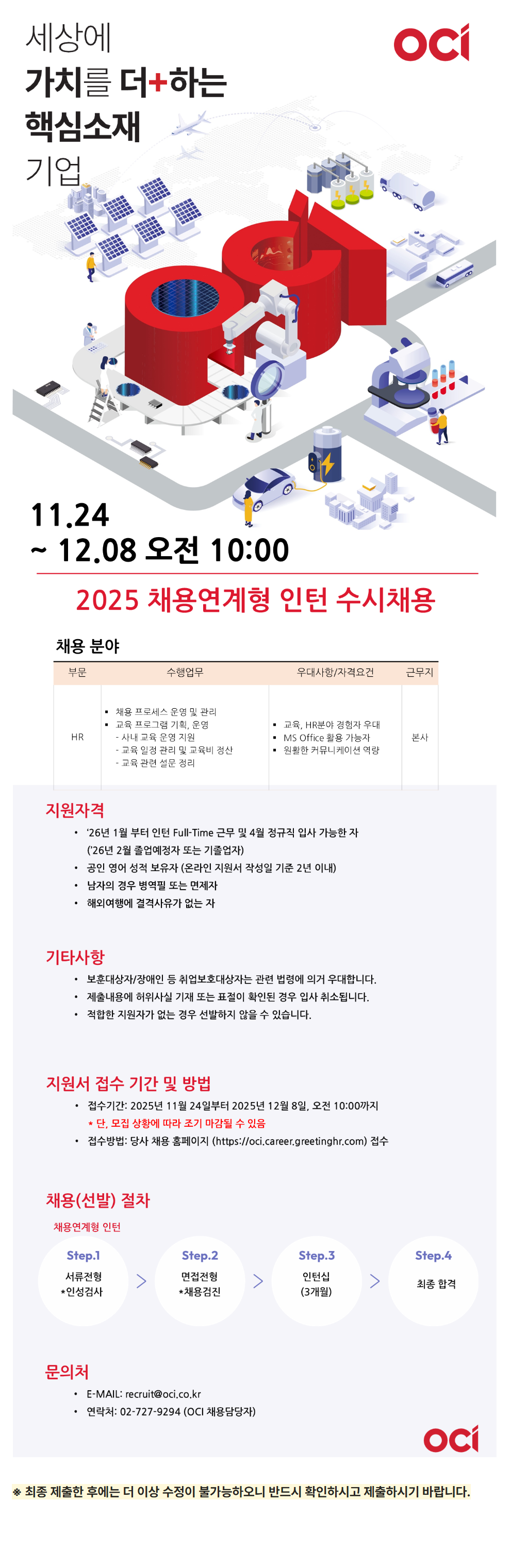 [OCI] 2025 ÇϹݱâ HR ä¿ë¿¬°èÇü ÀÎÅÏ ¼ö½Ãä¿ë