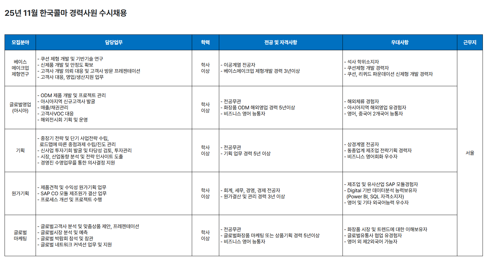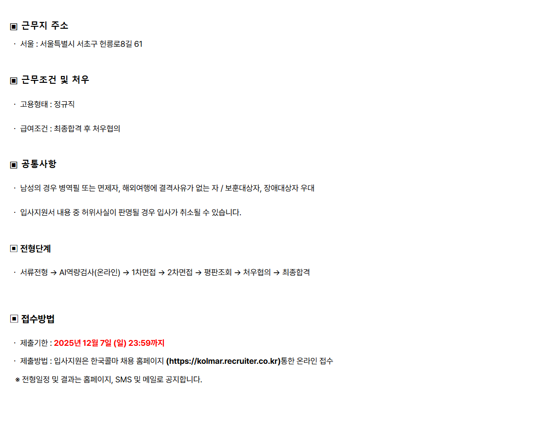 ¤ý Á¦Ãâ¹æ¹ý : ÀÔ»çÁö¿øÀº Çѱ¹Äݸ¶ ä¿ë ȨÆäÀÌÁö (https://kolmar.recruiter.co.kr)ÅëÇÑ ¿Â¶óÀÎ Á¢¼ö