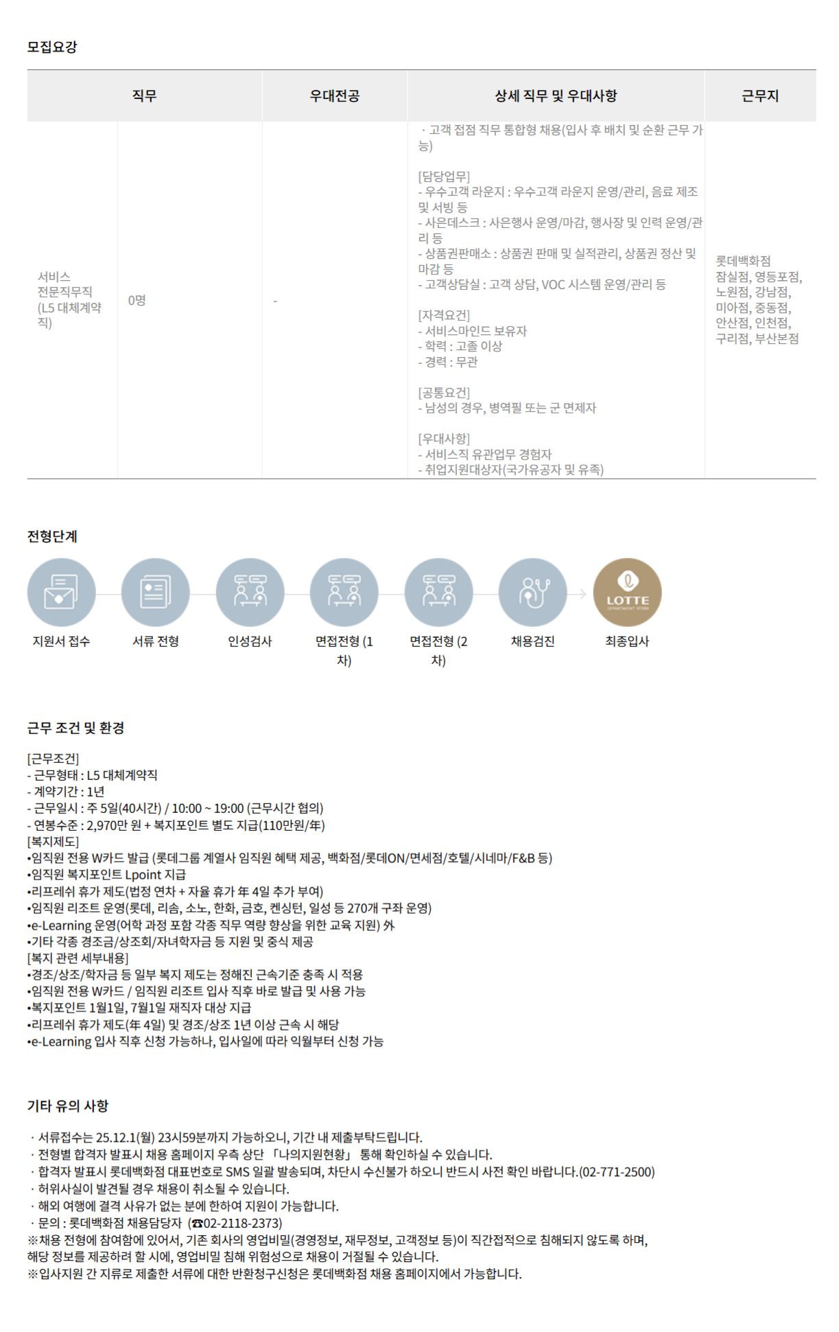 ¡Ú[·Ôµ¥¹éÈÁ¡] ¼ºñ½ºÀü¹®Á÷¹«Á÷ ´ë±Ô¸ð ä¿ë (°è¾àÁ÷, 11¿ù3Â÷)