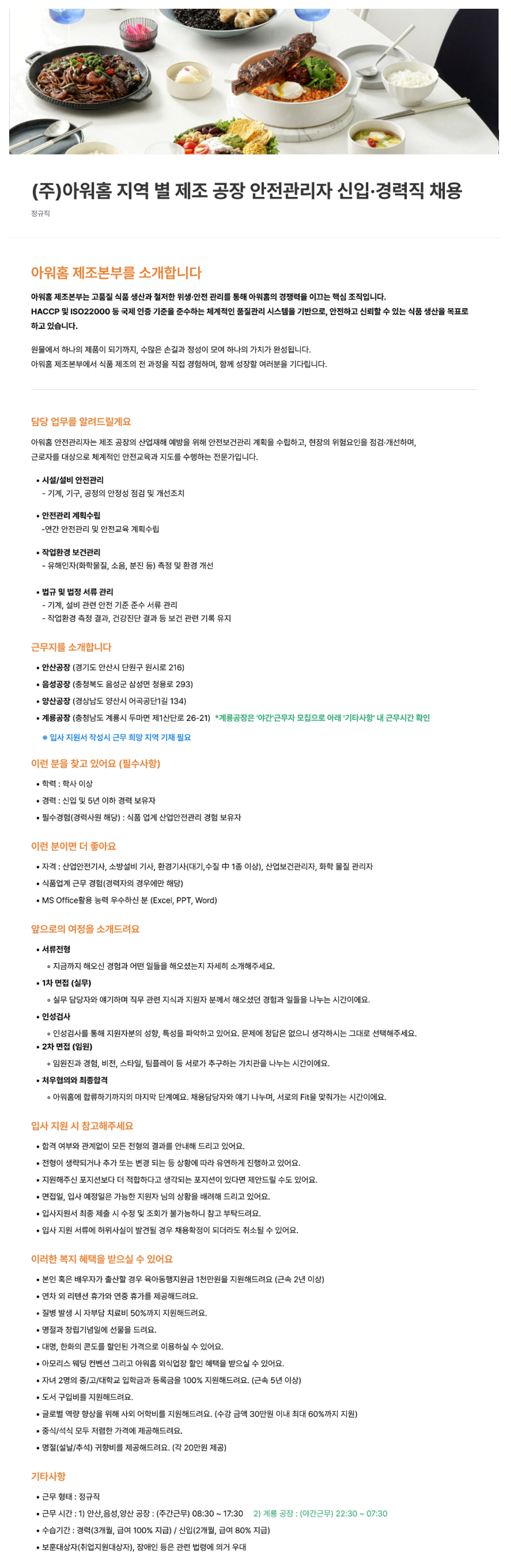 [Á¦Á¶º»ºÎ] Áö¿ª º°(¾È»ê,À½¼º,¾ç»ê,°è·æ) Á¦Á¶ °øÀå ¾ÈÀü°ü¸®ÀÚ ½ÅÀÔ¡¤°æ·ÂÁ÷ ä¿ë