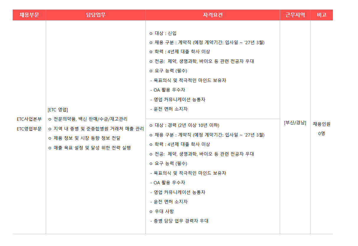 [±¤µ¿Á¦¾à] ETC¿µ¾÷ºÎ¹® ºÎ»ê/°æ³² ¿µ¾÷»ç¿ø(MR) ½ÅÀÔ ¹× °æ·ÂÁ÷¿ø ¸ðÁý(°è¾àÁ÷)