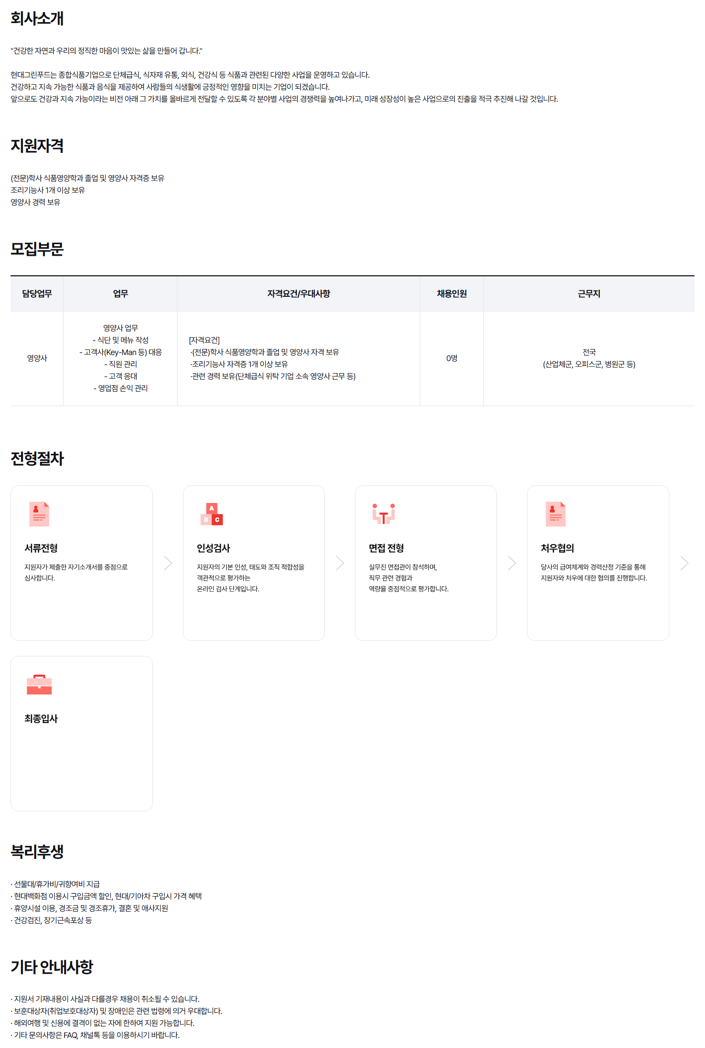 Çö´ë±×¸°Çªµå´Â Á¾ÇÕ½Äǰ±â¾÷À¸·Î ´Üü±Þ½Ä, ½ÄÀÚÀç À¯Åë, ¿Ü½Ä, °Ç°½Ä µî ½Äǰ°ú °ü·ÃµÈ ´Ù¾çÇÑ »ç¾÷À» ¿î¿µÇϰí ÀÖ½À´Ï´Ù.