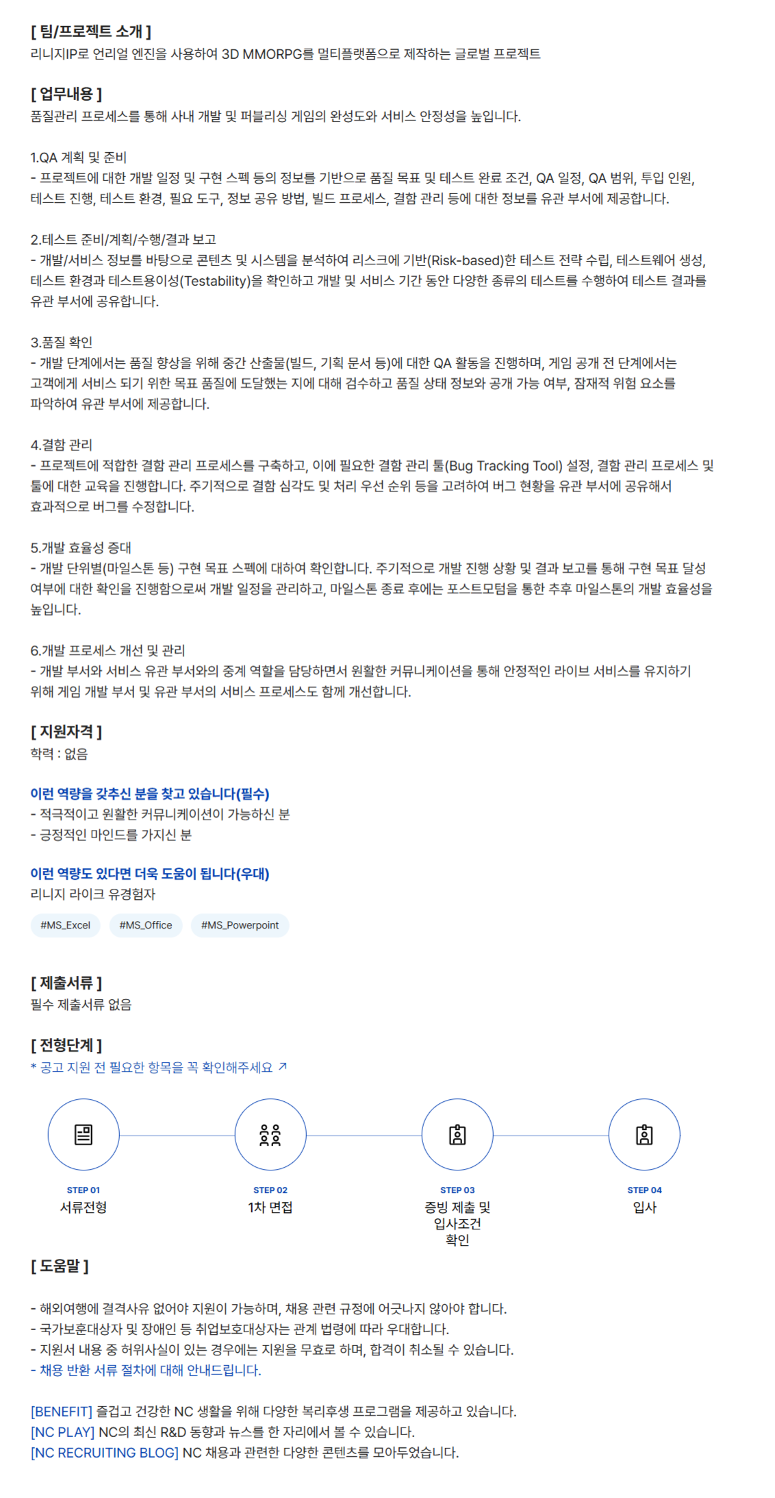 [´Ü±â°è¾àÁ÷][¸®´ÏÁöW] °ÔÀÓ Å×½ºÅÍ ¹× ¶óÀ̺ê Å×½ºÆ® QA ¸ðÁý