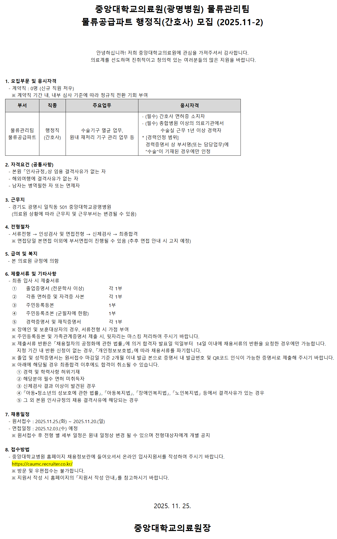 ¹°·ù°ø±ÞÆÄÆ® ÇàÁ¤Á÷(°£È£»ç) ¸ðÁý (2025.11-2)