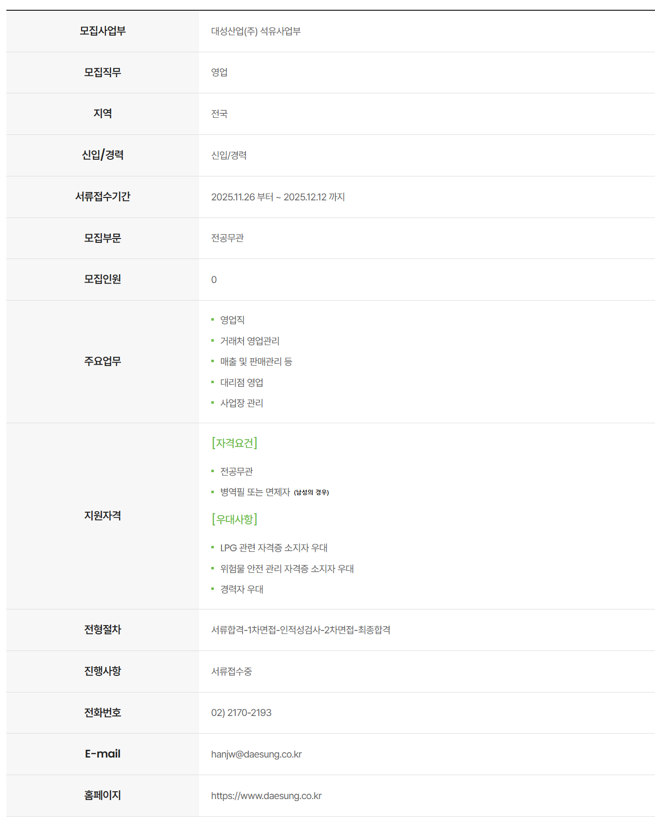 ¸ðÁý»ç¾÷ºÎ ´ë¼º»ê¾÷(ÁÖ) ¼®À¯»ç¾÷ºÎ