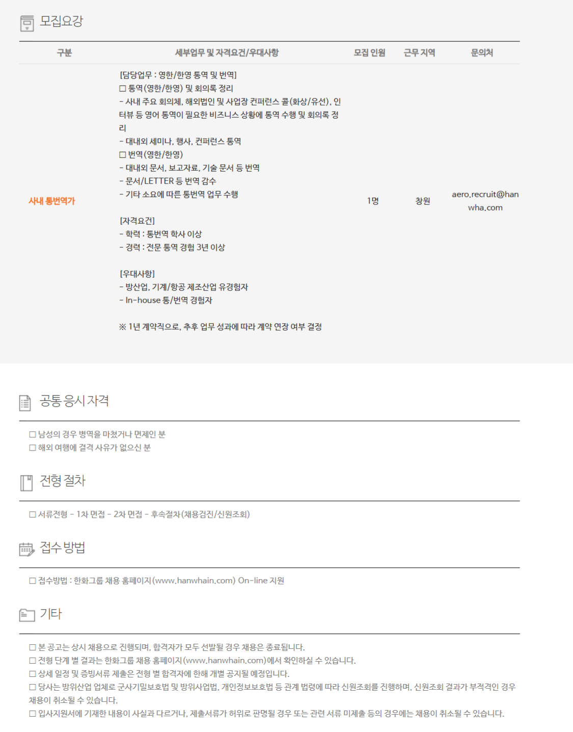 »ç³» Åë¹ø¿ª°¡ [´ã´ç¾÷¹« : ¿µÇÑ/ÇÑ¿µ Å뿪 ¹× ¹ø¿ª] ¡à Å뿪(¿µÇÑ/ÇÑ¿µ) ¹× ȸÀÇ·Ï Á¤¸® - »ç³» ÁÖ¿ä ȸÀÇü, ÇØ¿Ü¹ýÀÎ ¹× »ç¾÷Àå ÄÁÆÛ·±½º ÄÝ(È­»ó/À¯¼±), ÀÎÅÍºä µî ¿µ¾î Å뿪ÀÌ ÇÊ¿äÇÑ ºñÁî´Ï½º »óȲ¿¡ Å뿪 ¼öÇà ¹× È¸ÀÇ·Ï Á¤¸® - ´ë³»¿Ü ¼¼¹Ì³ª, Çà»ç, ÄÁÆÛ·±½º Å뿪 ¡à ¹ø¿ª(¿µÇÑ/ÇÑ¿µ) - ´ë³»¿Ü ¹®¼­, º¸°íÀÚ·á, ±â¼ú ¹®¼­ µî ¹ø¿ª - ¹®¼­/LETTER µî ¹ø¿ª °¨¼ö - ±âŸ ¼Ò¿ä¿¡ µû¸¥ Åë¹ø¿ª ¾÷¹« ¼öÇà [ÀÚ°Ý¿ä°Ç] - Çз : Åë¹ø¿ª Çлç ÀÌ»ó - °æ·Â : Àü¹® Å뿪 °æÇè 3³â ÀÌ»ó [¿ì´ë»çÇ×] - ¹æ»ê¾÷, ±â°è/Ç×°ø Á¦Á¶»ê¾÷ À¯°æÇèÀÚ - In-house Åë/¹ø¿ª °æÇèÀÚ ¡Ø 1³â °è¾àÁ÷À¸·Î, ÃßÈÄ ¾÷¹« ¼º°ú¿¡ µû¶ó °è¾à ¿¬Àå ¿©ºÎ °áÁ¤ 1¸í â¿ø ******@*******.***