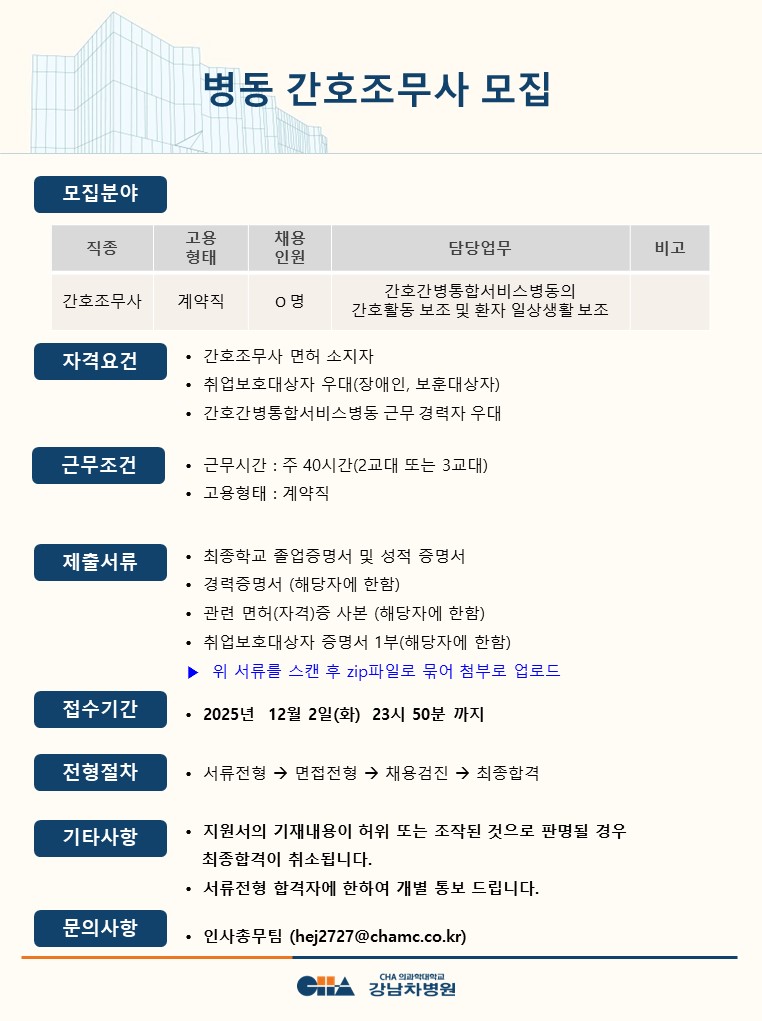 [°³²Â÷º´¿ø] °£È£°£º´º´µ¿ °£È£Á¶¹«»ç ¸ðÁý