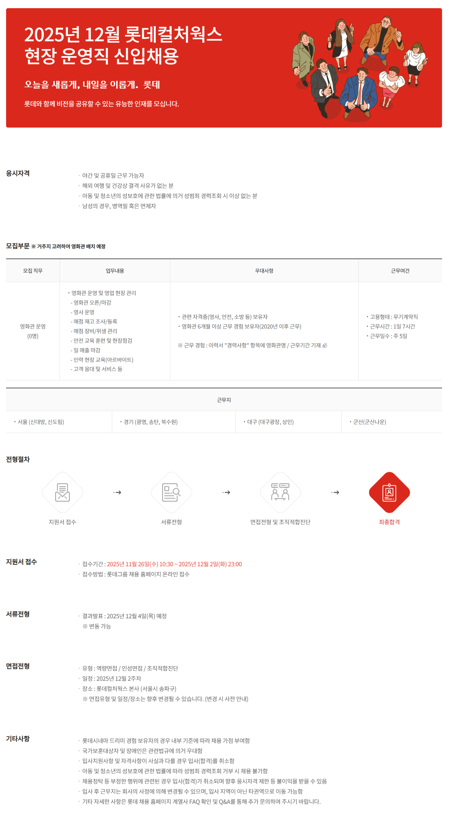 2025³â 12¿ù ·Ôµ¥ÄÃó¿÷½º ÇöÀå ¿î¿µÁ÷ ½ÅÀÔ»ç¿ø ä¿ë