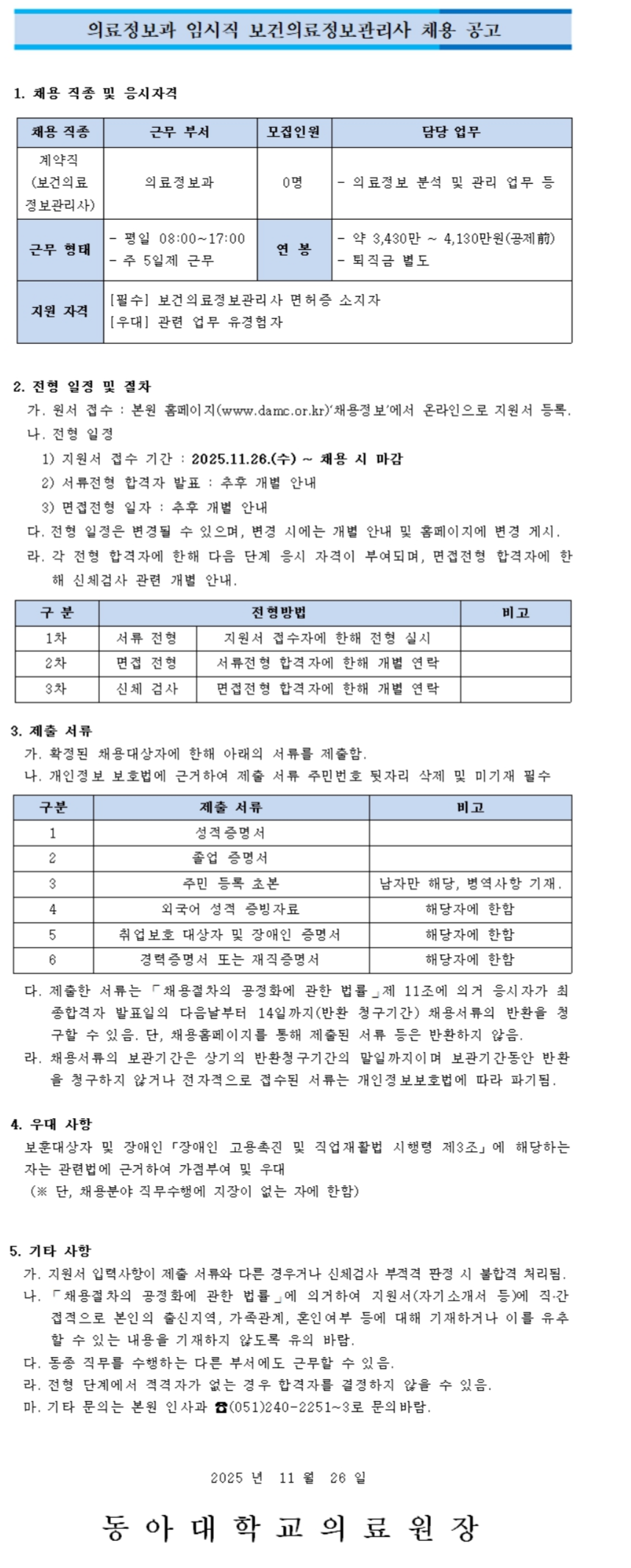 ÀÇ·áÁ¤º¸°ú ÀÓ½ÃÁ÷ º¸°ÇÀÇ·áÁ¤º¸°ü¸®»ç ä¿ë °ø°í