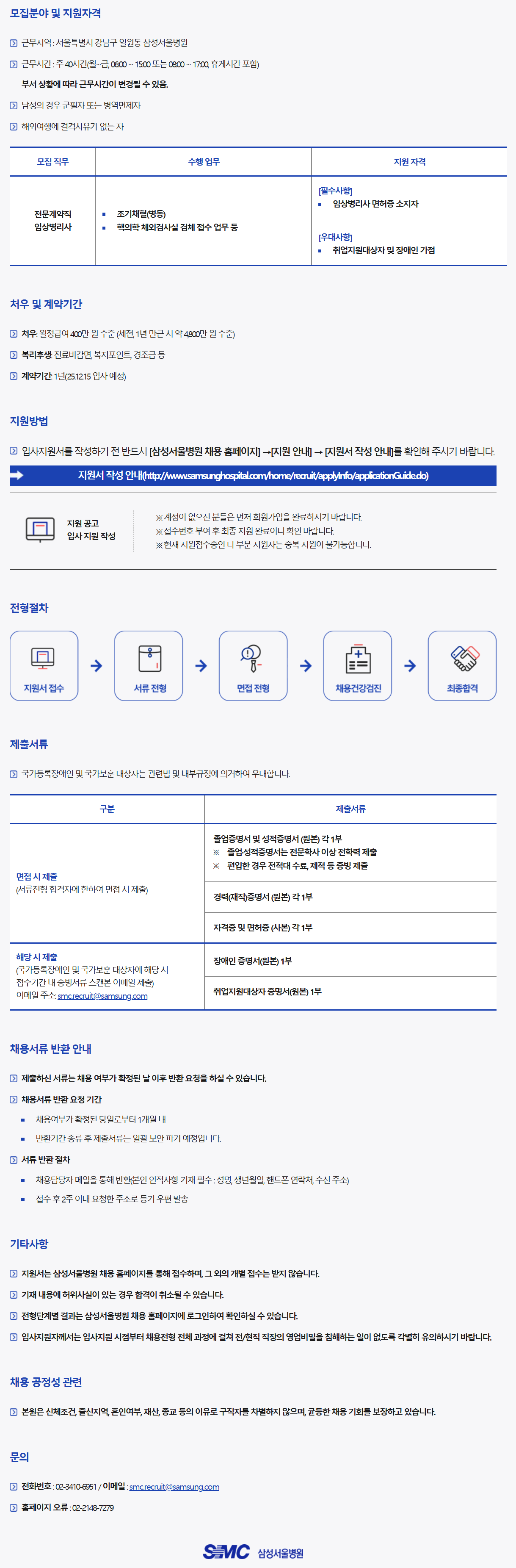 ¸ðÁý Á÷¹« ¼öÇà ¾÷¹« Áö¿ø ÀÚ°Ý Àü¹®°è¾àÁ÷ ÀÓ»óº´¸®»ç Á¶±âäÇ÷(º´µ¿) ÇÙÀÇÇРü¿Ü°Ë»ç½Ç °Ëü Á¢¼ö ¾÷¹« µî [Çʼö»çÇ×] ÀÓ»óº´¸®»ç ¸éÇãÁõ ¼ÒÁöÀÚ [¿ì´ë»çÇ×] Ãë¾÷Áö¿ø´ë»óÀÚ ¹× Àå¾ÖÀÎ °¡Á¡