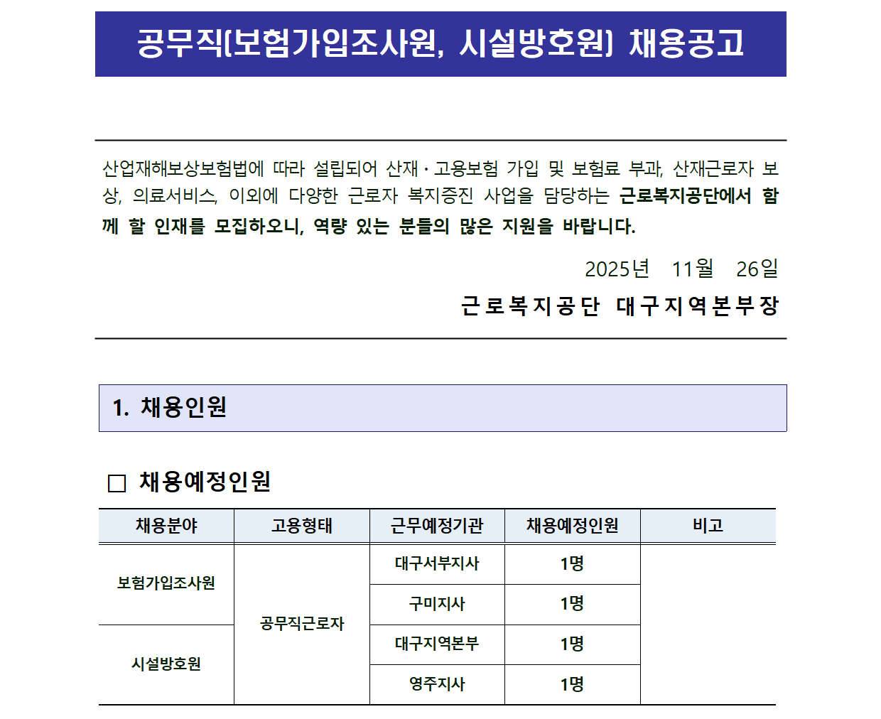 °ø¹«Á÷(º¸Çè°¡ÀÔÁ¶»ç¿ø, ½Ã¼³¹æÈ£¿ø) ä¿ë °ø°í