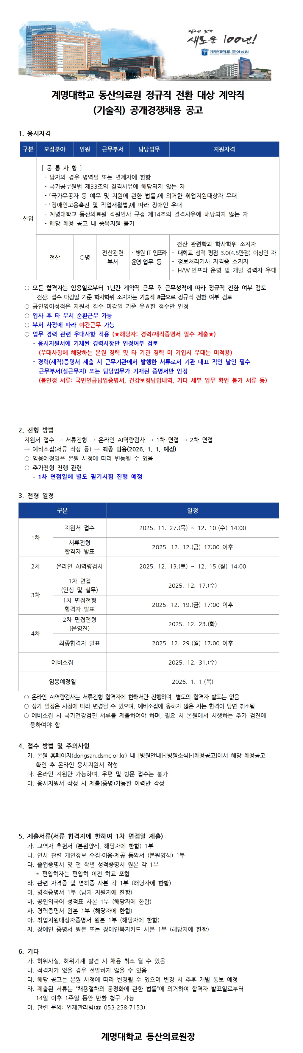 °è¸í´ëÇб³ µ¿»êÀÇ·á¿ø Á¤±ÔÁ÷ Àüȯ °è¾àÁ÷(Àü»ê) °ø°³°æÀïä¿ë