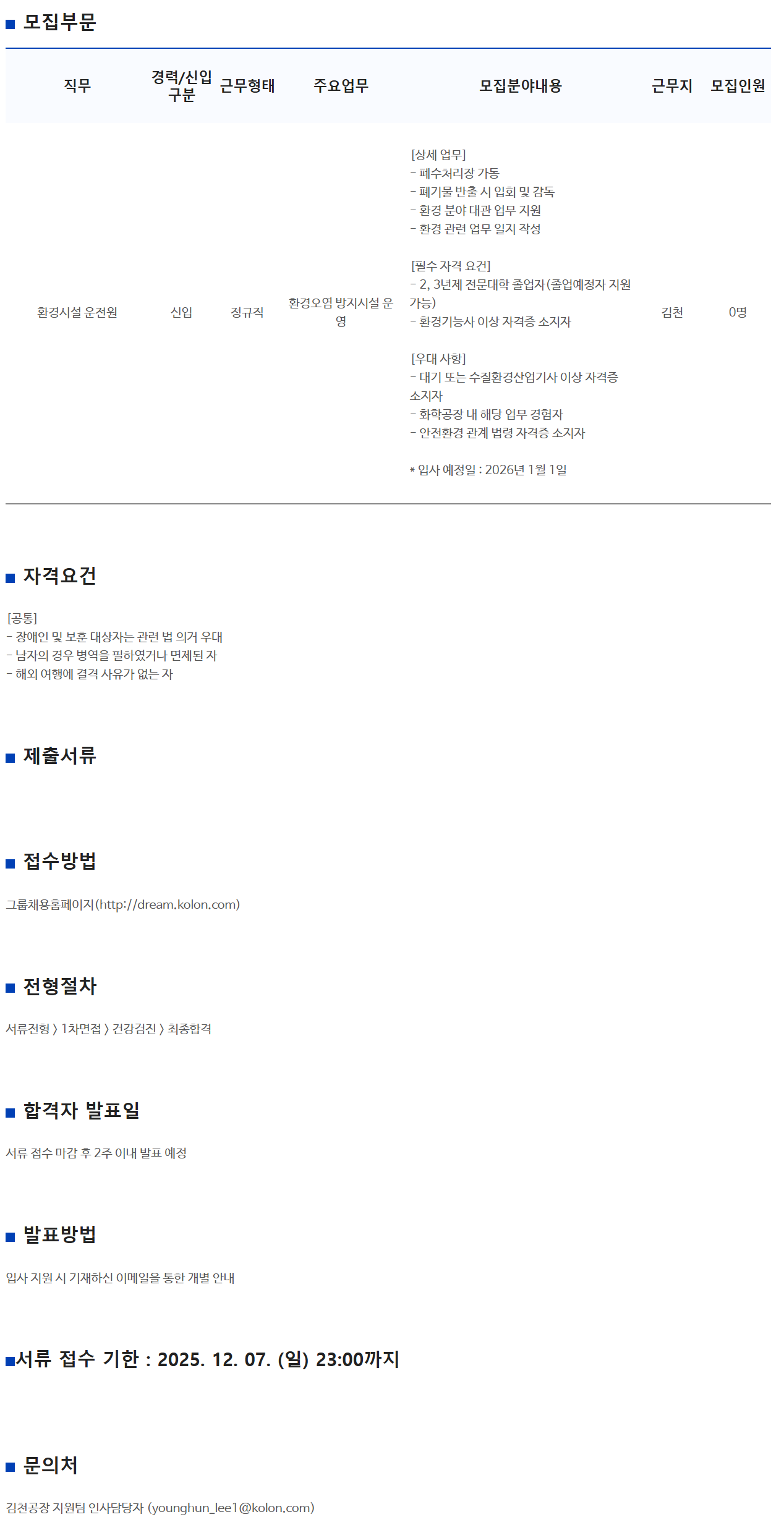 ȯ°æ½Ã¼³ ¿îÀü¿ø ½ÅÀÔ Á¤±ÔÁ÷ ȯ°æ¿À¿° ¹æÁö½Ã¼³ ¿î¿µ [»ó¼¼ ¾÷¹«]
