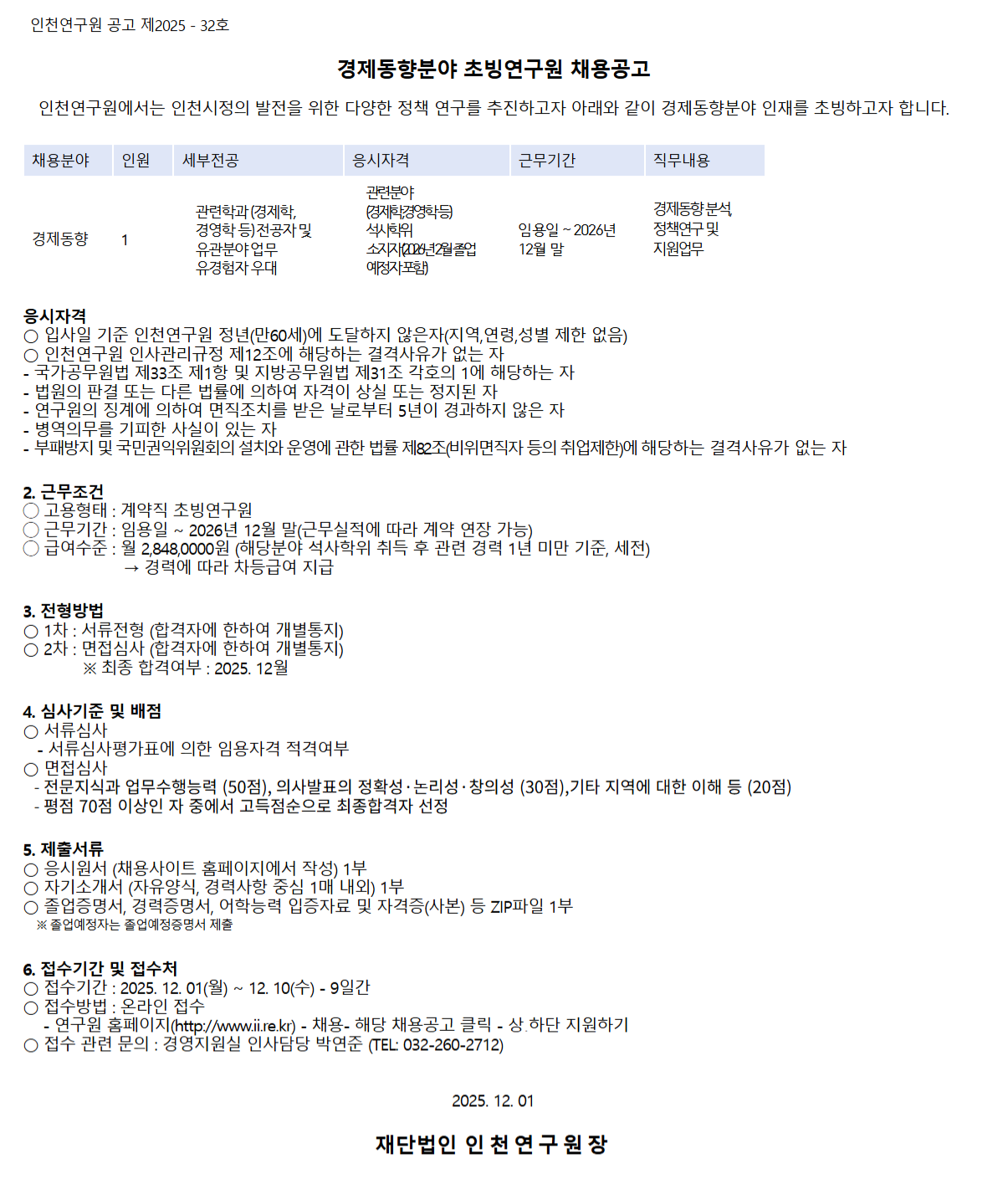 [ä¿ë°ø°í2025-32È£]°æÁ¦µ¿ÇâºÐ¾ß Ãʺù¿¬±¸¿ø ä¿ë°ø°í