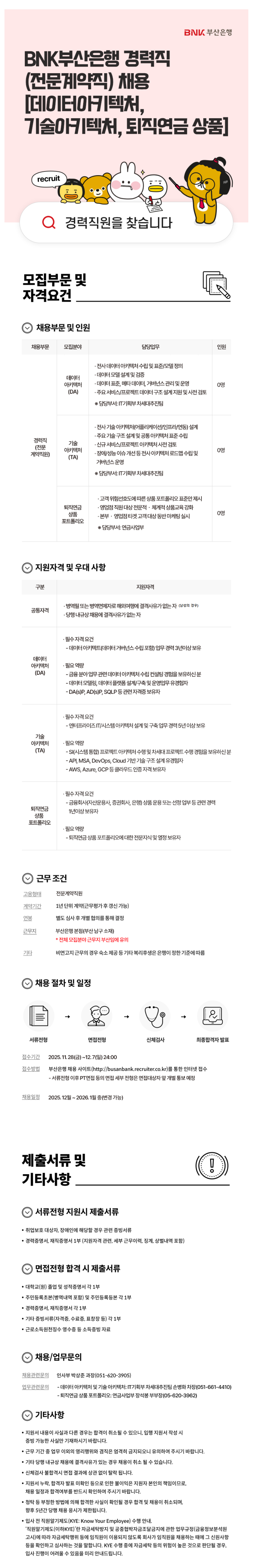 BNKºÎ»êÀºÇà °æ·ÂÁ÷(Àü¹®°è¾àÁ÷) ä¿ë[µ¥ÀÌÅ;ÆÅ°ÅØÃ³, ±â¼ú¾ÆÅ°ÅØÃ³, ÅðÁ÷¿¬±Ý »óǰ]