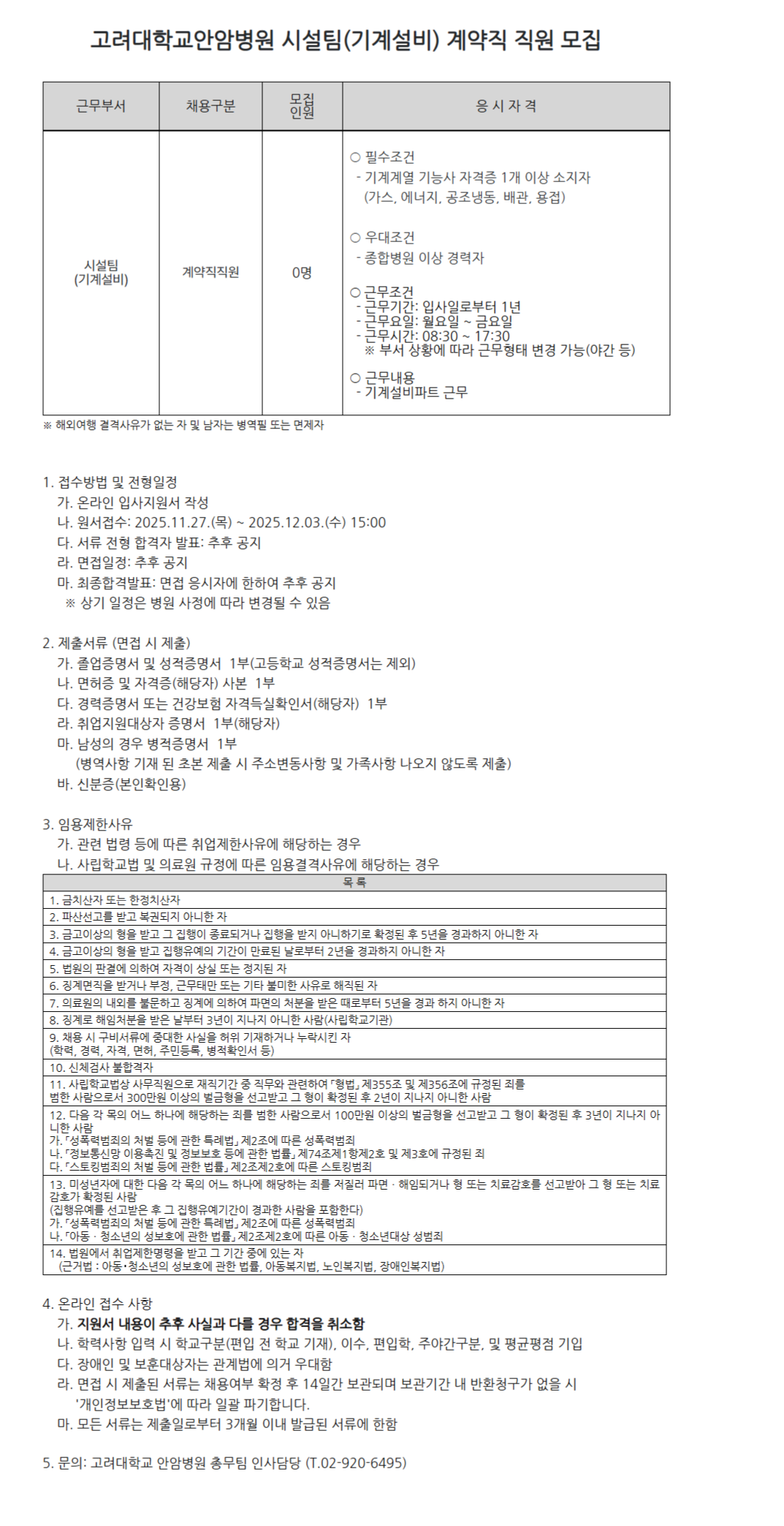 [¾È¾Ïº´¿ø 25-217]½Ã¼³ÆÀ(±â°è¼³ºñ) °è¾àÁ÷ Á÷¿ø ¸ðÁý