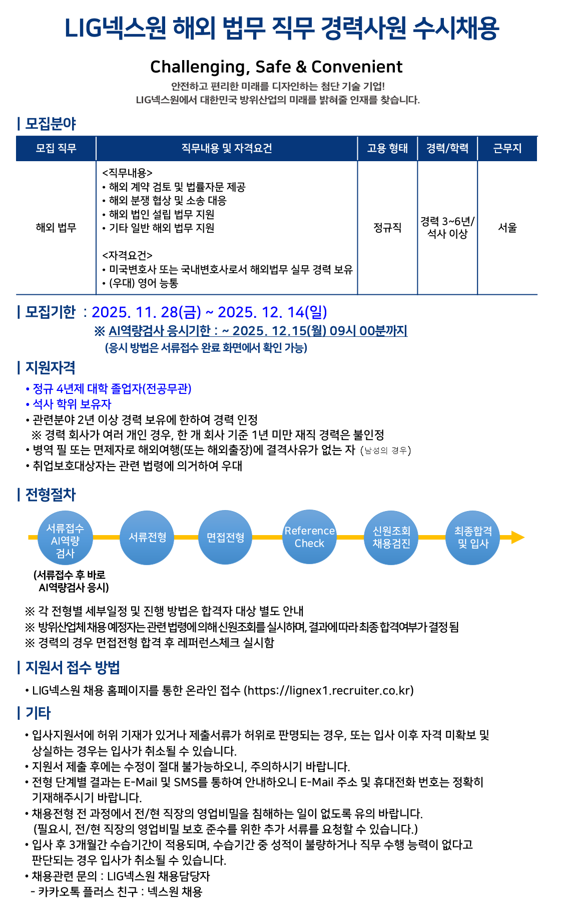 2025³â ÇϹݱâ LIG³Ø½º¿ø ÇØ¿Ü ¹ý¹« ¼ö½Ãä¿ë
