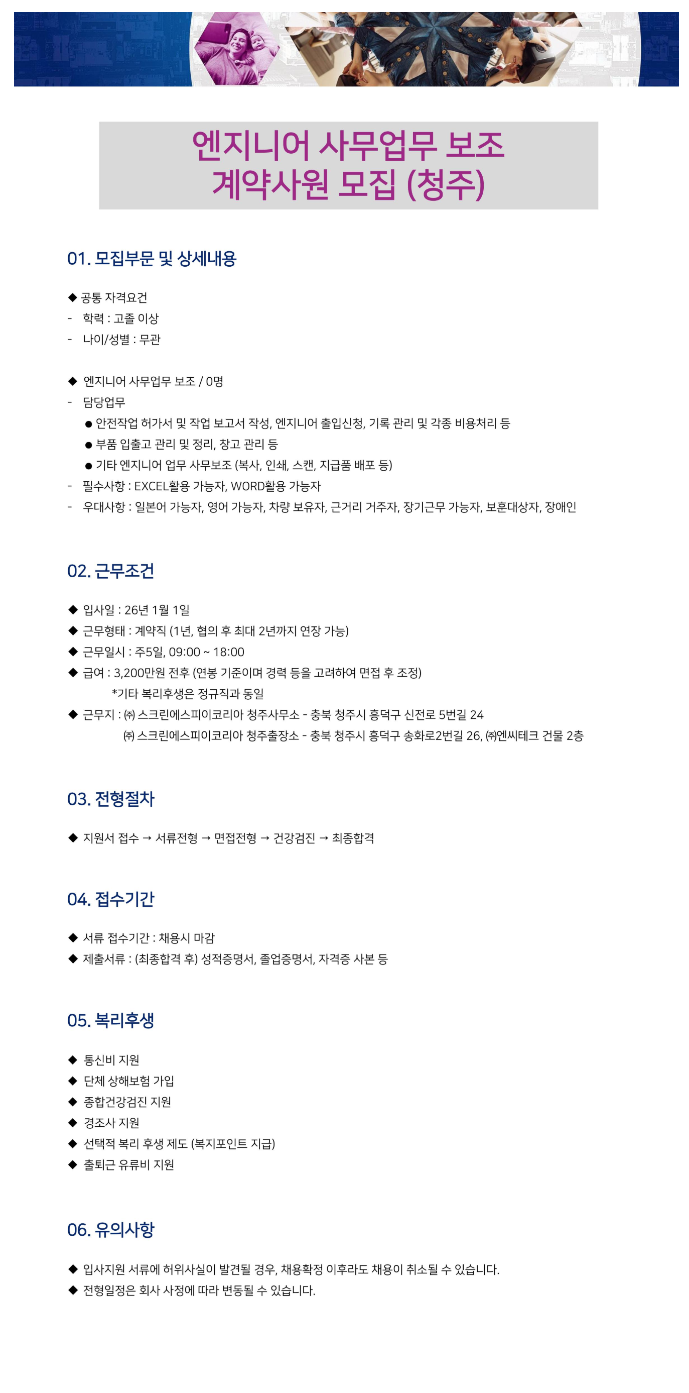 ¿£Áö´Ï¾î »ç¹«º¸Á¶ °è¾àÁ÷ ä¿ë (ûÁÖ)