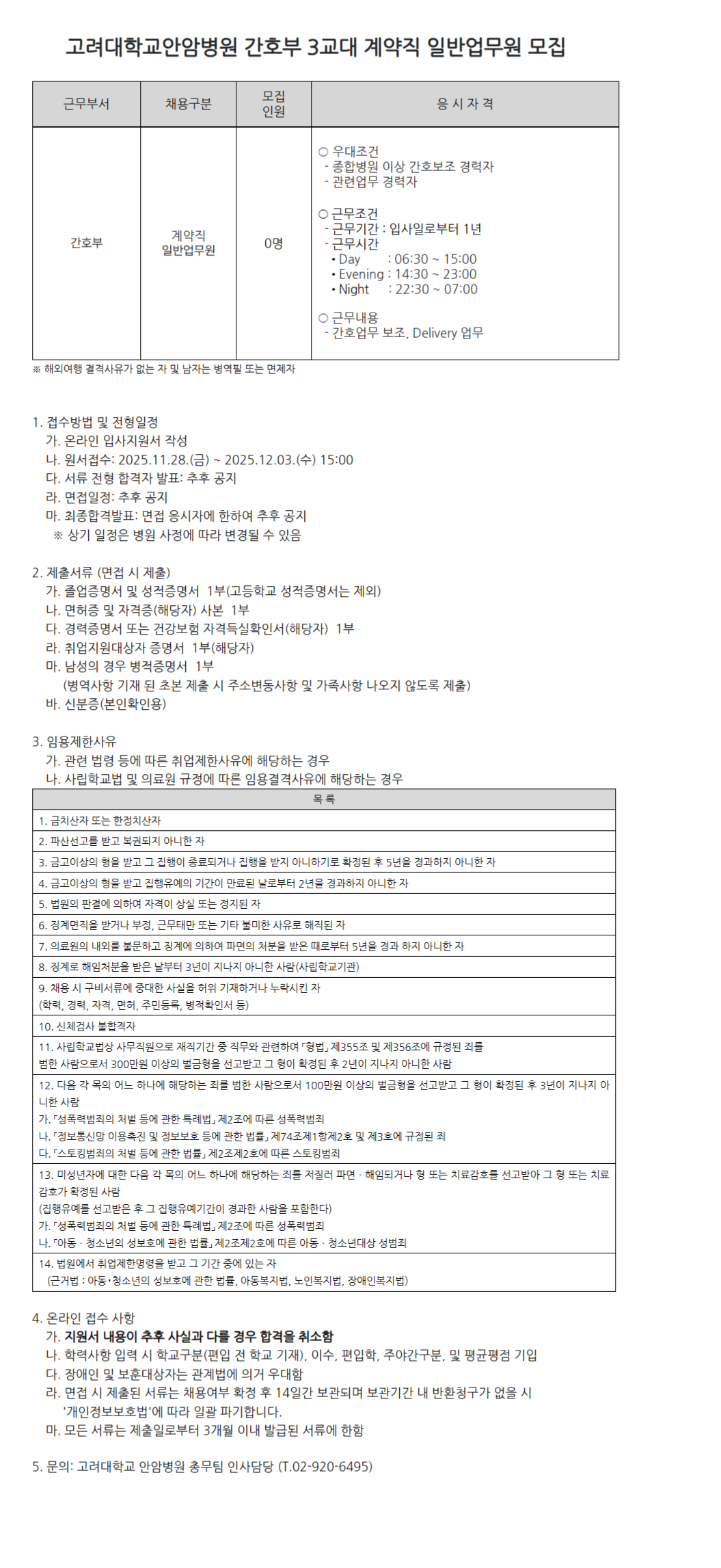 [¾È¾Ïº´¿ø 25-219]°£È£ºÎ 3±³´ë °è¾àÁ÷ ÀϹݾ÷¹«¿ø ¸ðÁý