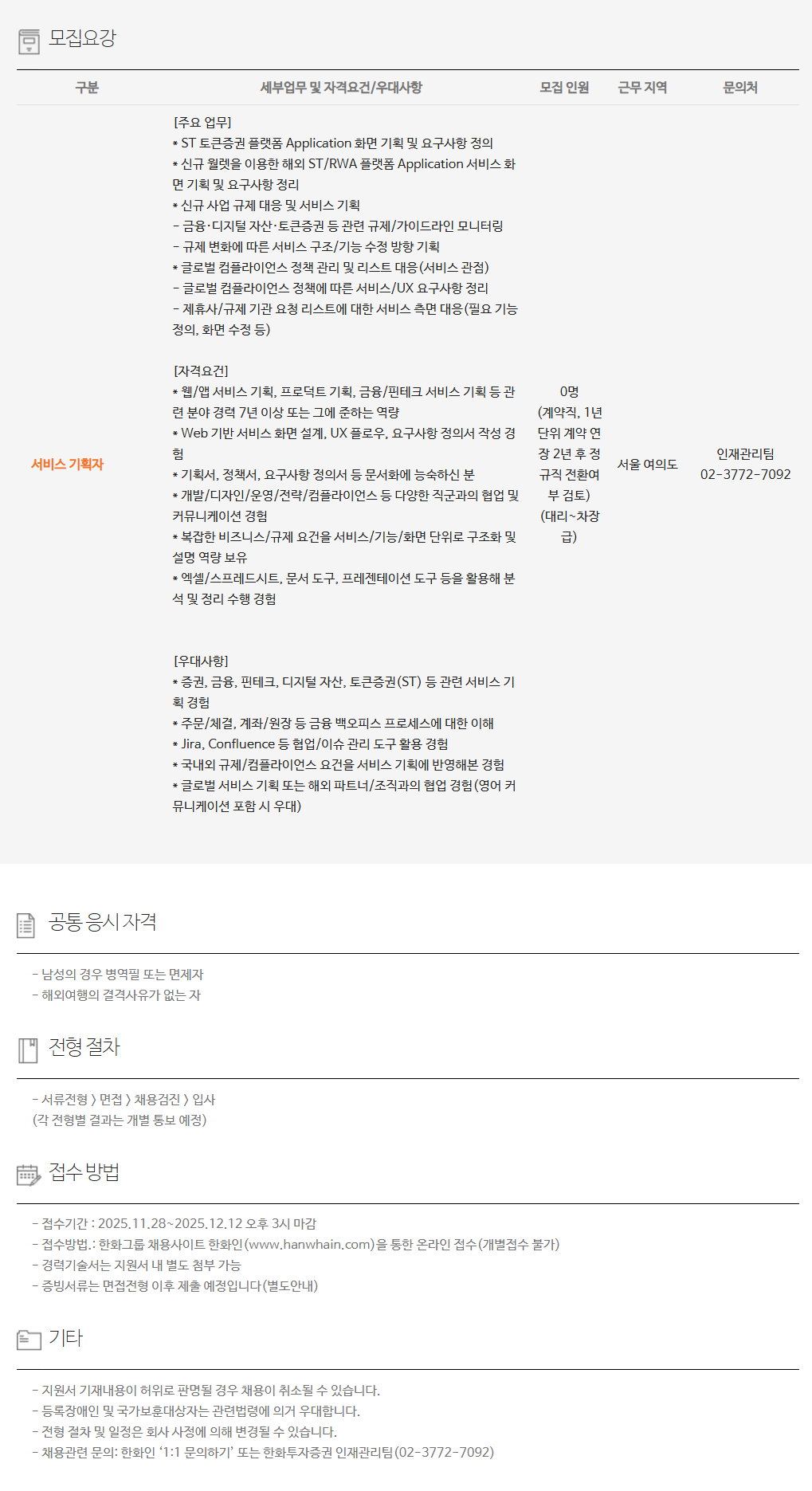 * À¥/¾Û ¼ºñ½º ±âȹ, ÇÁ·Î´öÆ® ±âȹ, ±ÝÀ¶/ÇÉÅ×Å© ¼ºñ½º ±âȹ µî °ü·Ã ºÐ¾ß °æ·Â 7³â ÀÌ»ó ¶Ç´Â ±×¿¡ ÁØÇÏ´Â ¿ª·®