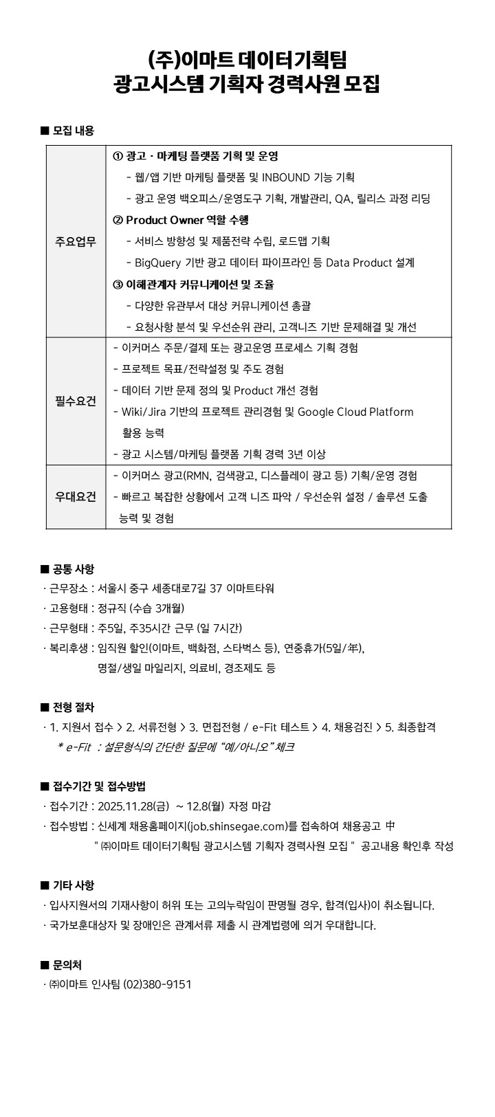 À̸¶Æ® µ¥ÀÌÅͱâȹÆÀ ±¤°í½Ã½ºÅÛ ±âȹÀÚ °æ·Â»ç¿ø ¸ðÁý