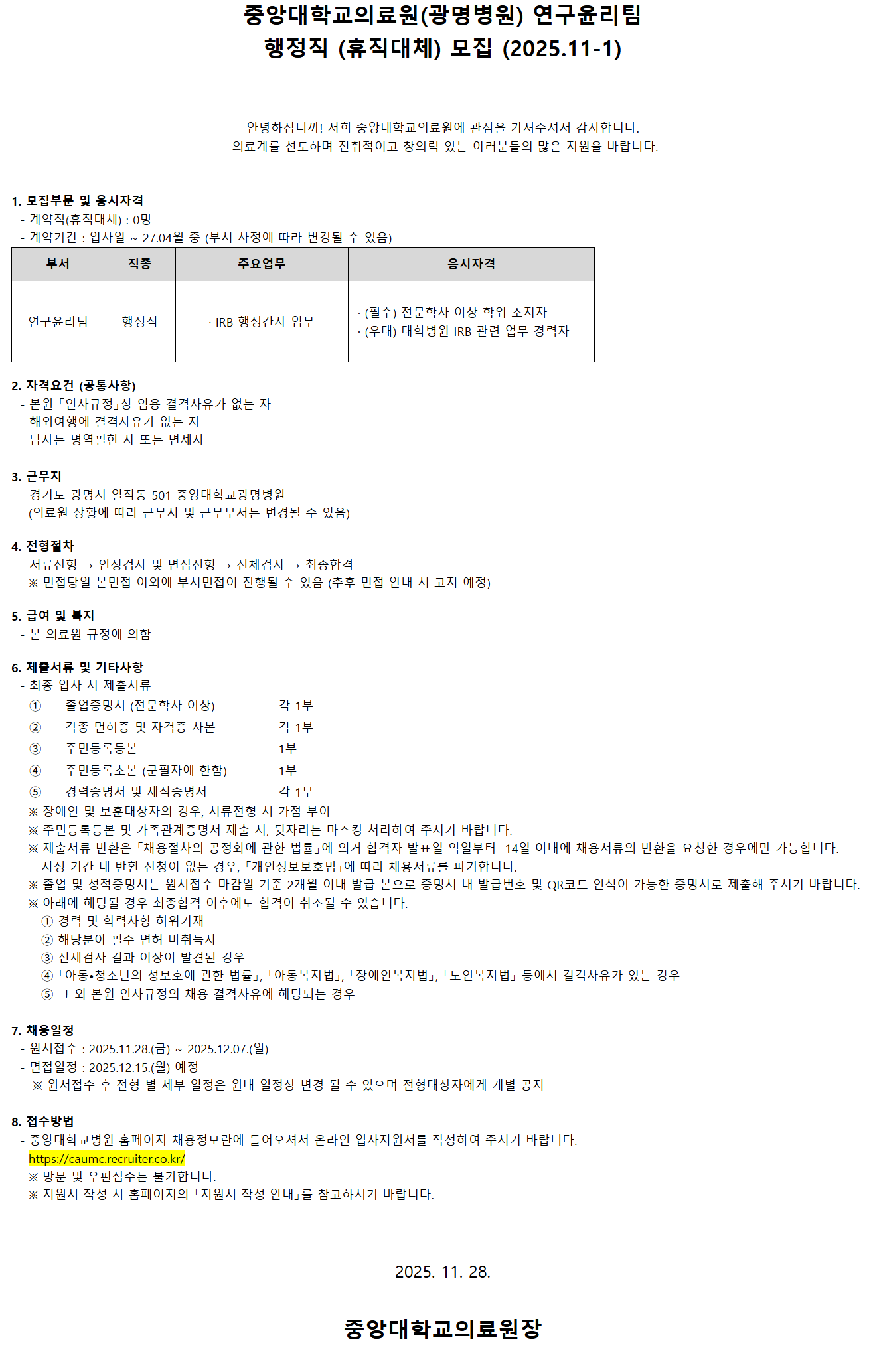 - Áß¾Ó´ëÇб³º´¿ø ȨÆäÀÌÁö ä¿ëÁ¤º¸¶õ¿¡ µé¾î¿À¼Å¼ ¿Â¶óÀÎ ÀÔ»çÁö¿ø¼¸¦ ÀÛ¼ºÇÏ¿© Áֽñ⠹ٶø´Ï´Ù.