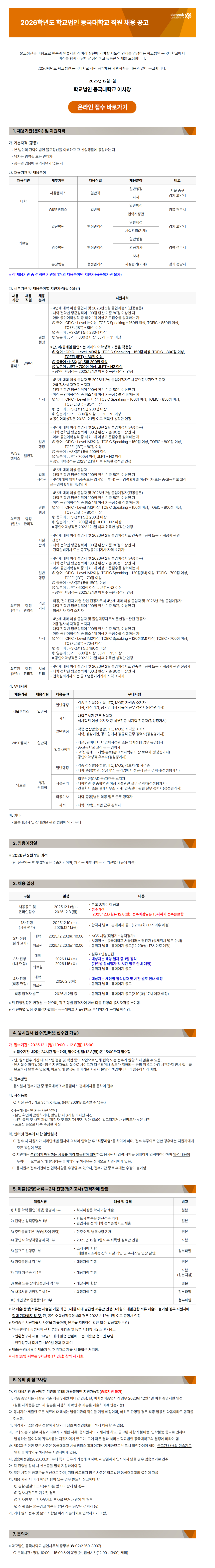 2026Çг⵵ Çб³¹ýÀÎ µ¿±¹´ëÇб³ »êÇϱâ°ü(´ëÇÐ/ÀÇ·á¿ø) Á¤±ÔÁ÷¿ø ä¿ë°ø°í(~12/8(¿ù) 15½Ã±îÁö)